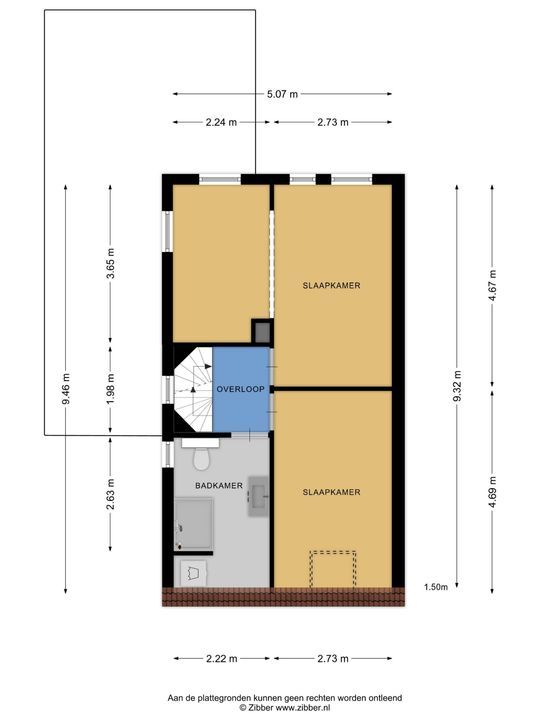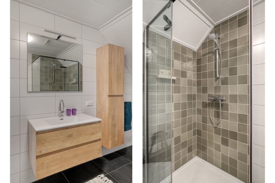 Overloop, twee royale slaapkamers en een moderne badkamer met inloopdouche, wastafel, toilet en aansluiting voor wasapparatuur. Door het plaatsen van een tussenwand en een deur is van de grootste slaapkamer eenvoudig een derde slaapkamer op deze verdieping te creëren.