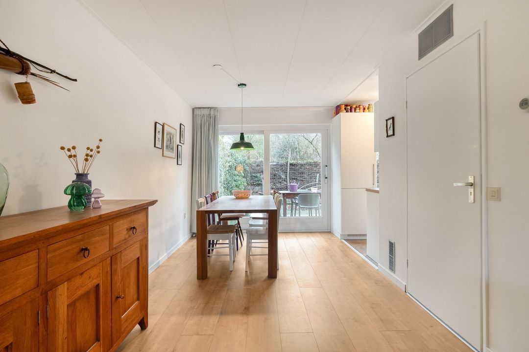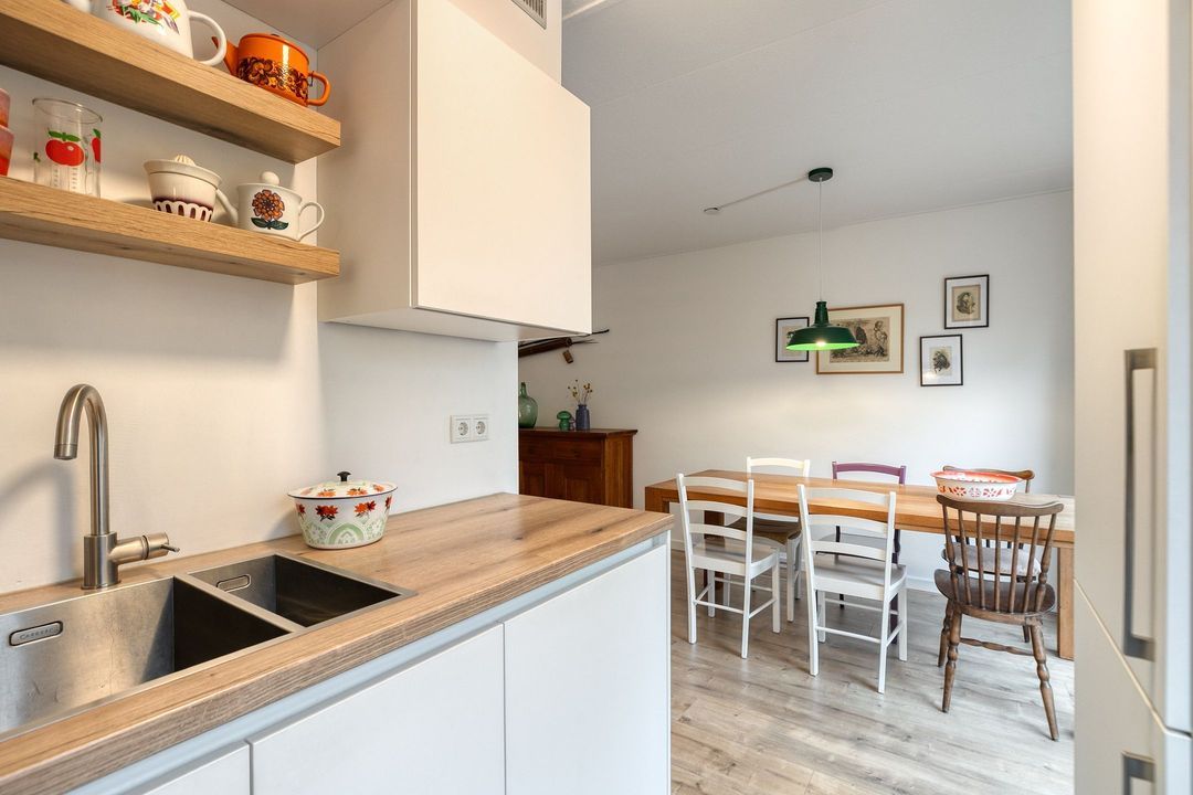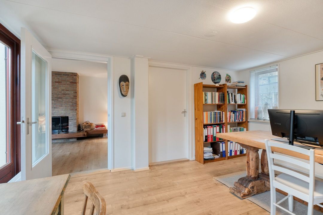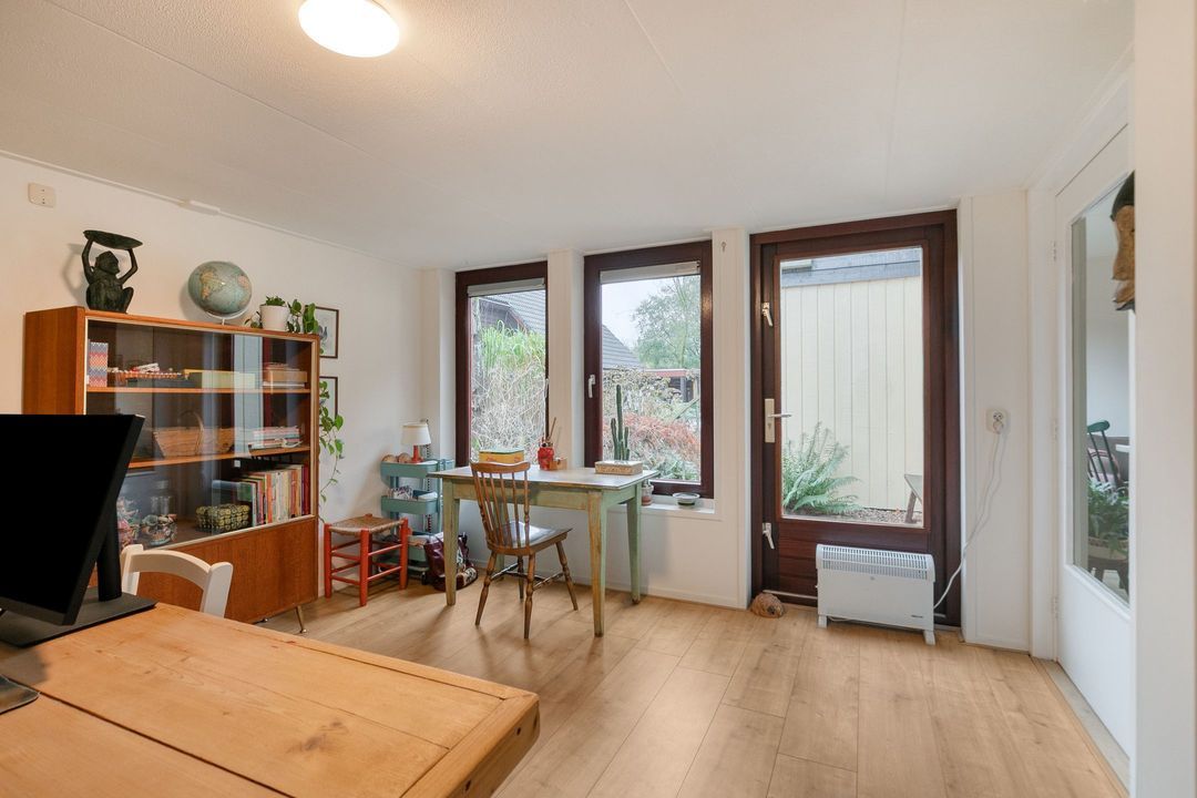Entree, hal met garderobe, meterkast en modern toilet met fonteintje. De moderne keuken (2024) bevindt zich aan de achterzijde en is voorzien van diverse inbouwapparatuur. Vanuit de keuken is er directe toegang tot de achtertuin. Aansluitend ligt de eetkamer met schuifpui naar het terras. De sfeervolle woonkamer beschikt over een open haard, een fraaie vloer en keurig afgewerkte wanden en plafonds. Vanuit de woonkamer is de werk-/slaapkamer bereikbaar, voorzien van vloerverwarming en een deur naar de voortuin. Grenzend aan deze kamer bevindt zich de voormalige badkamer met nog aanwezige aansluitingen, waardoor hier op eenvoudige wijze opnieuw een badkamer kan worden gerealiseerd. Vanuit deze ruimte is er toegang tot de inpandige berging met opstelling van de CV-ketel.
