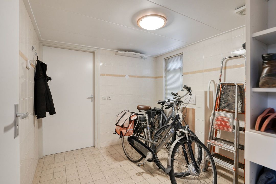 Aan de voorzijde bevindt zich een eigen parkeerplaats. Bij de voordeur is een handige inpandige berging aanwezig, ideaal voor fietsen of tuingereedschap.