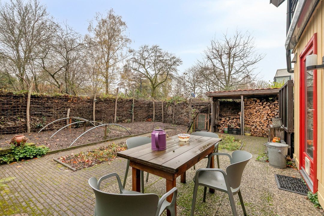 De zonnige achtertuin, gelegen op het zuidwesten, biedt veel privacy dankzij de ligging direct aan het Mheenpark. De tuin beschikt over een prettig terras met elektrische zonwering voorzien van windsensor en een achter-/zijingang.
