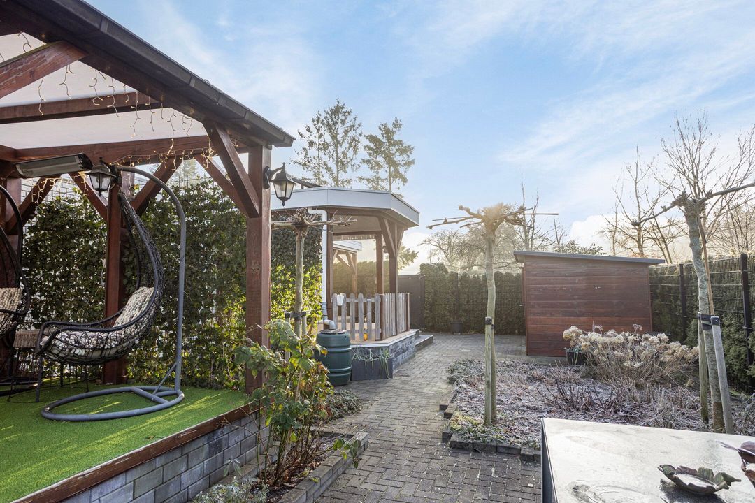 Ook buiten is het verblijf bijzonder aangenaam. U beschikt over meerdere veranda’s waar u op ieder moment van de dag kunt ontspannen. De buitensauna biedt extra luxe en wellness in uw eigen omgeving. Daarnaast is er een berging aanwezig en kunt u uw auto direct naast het chalet parkeren.