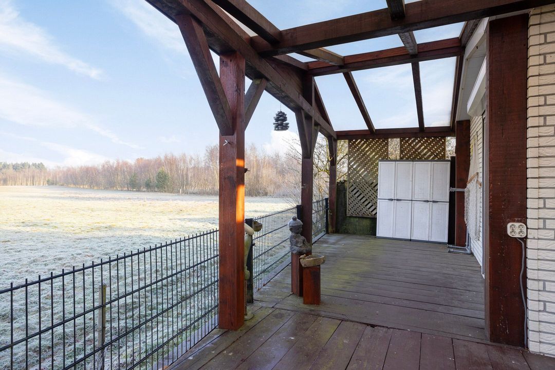 Ook buiten is het verblijf bijzonder aangenaam. U beschikt over meerdere veranda’s waar u op ieder moment van de dag kunt ontspannen. De buitensauna biedt extra luxe en wellness in uw eigen omgeving. Daarnaast is er een berging aanwezig en kunt u uw auto direct naast het chalet parkeren.
