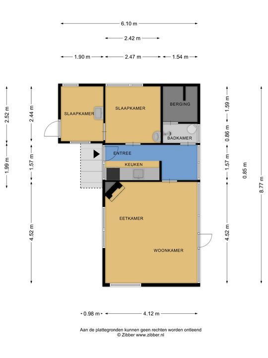 De recreatiebungalow heeft een praktische indeling. Via de entree komt u direct in de keuken, waar zich een keukenblok en de opstelling van de geiser bevinden. Aan de linkerzijde van de keuken zijn de slaapkamers gesitueerd. Wanneer u verder doorloopt, treft u aan de linkerzijde de badkamer met aansluitend de berging. Aan de rechterzijde bevindt zich de royale woonkamer, voorzien van openslaande deuren naar het zijterras, waardoor binnen en buiten mooi in elkaar overlopen. In de woonkamer is tevens een gaskachel aanwezig.