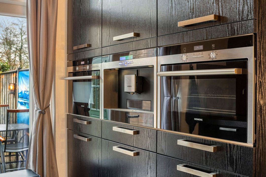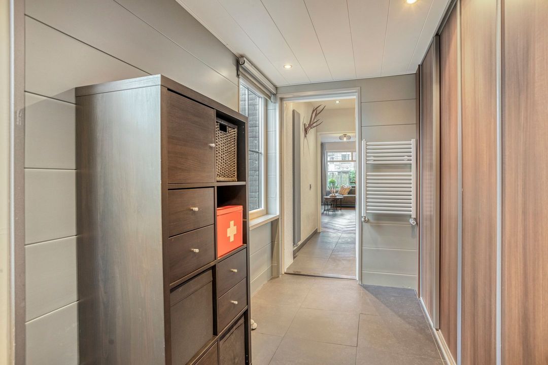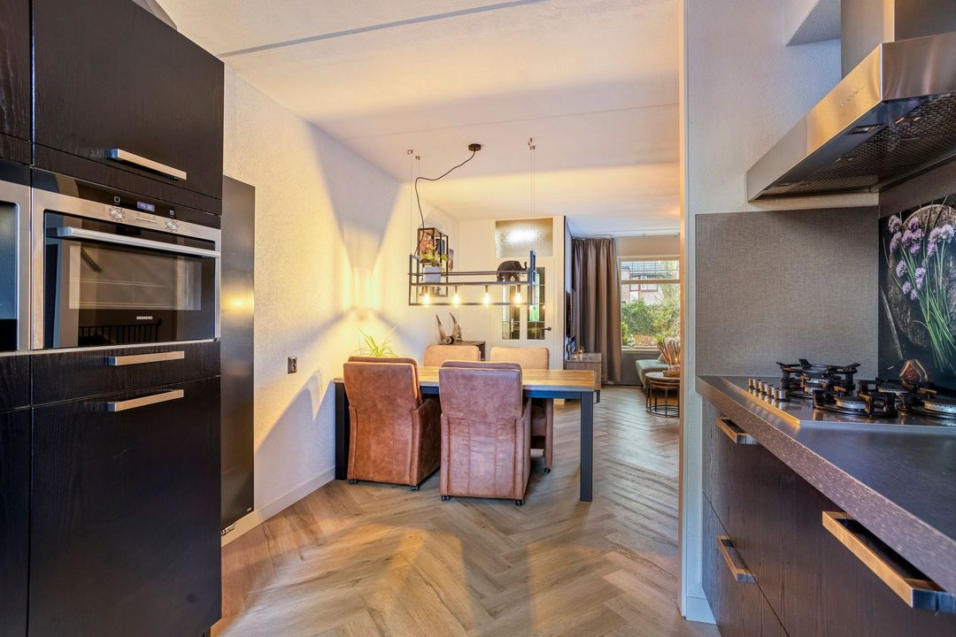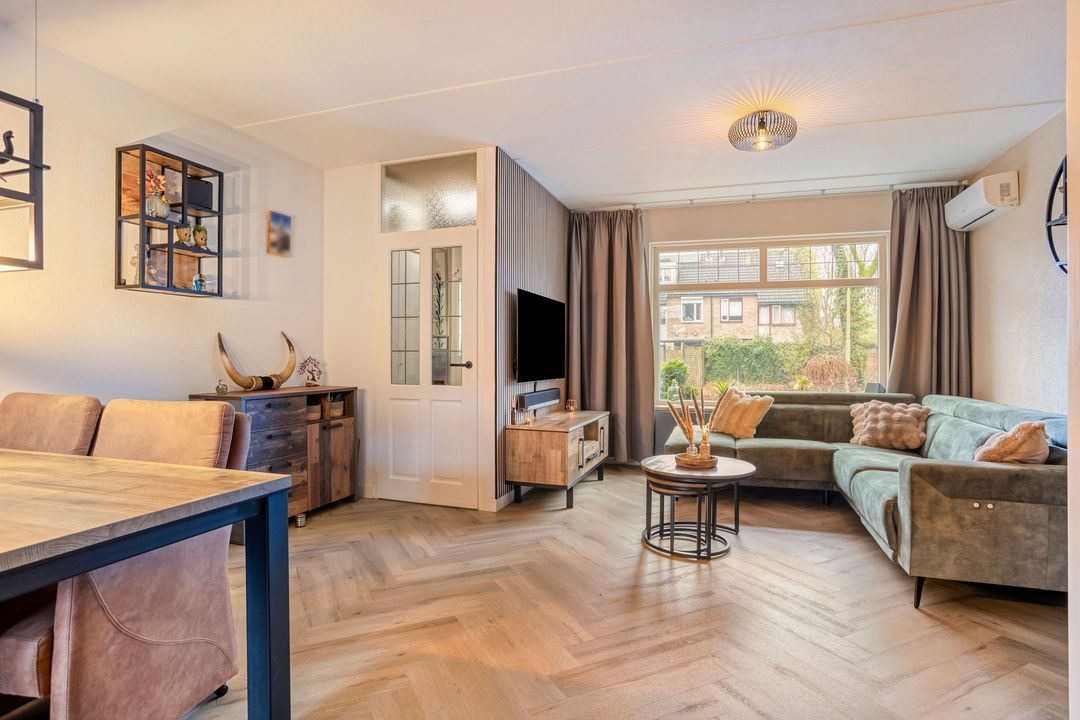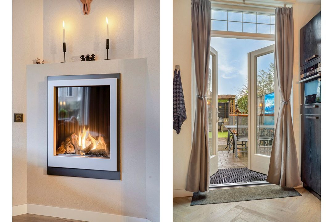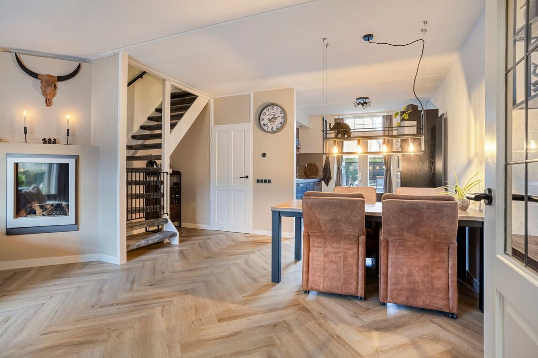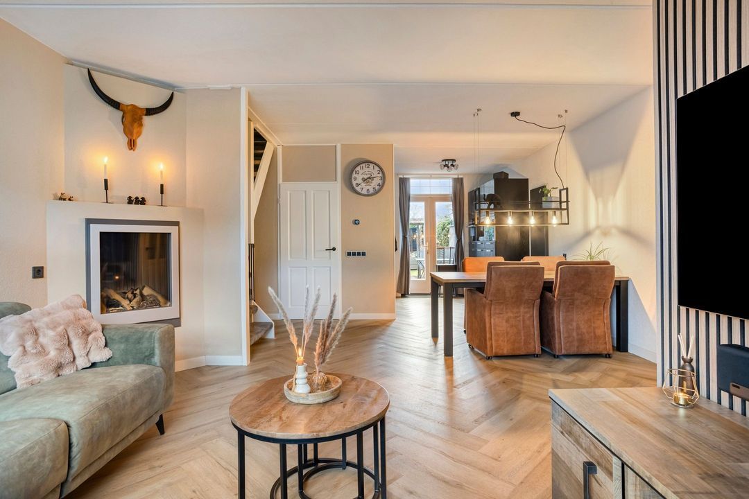 Via de entree komt u in de hal met meterkast. De royale woonkamer vormt het hart van de woning en is sfeervol ingericht met een mooie visgraatvloer, een gashaard en airconditioning, wat zorgt voor comfort in elk seizoen. De aangrenzende keuken is modern en praktisch ingericht en voorzien van diverse inbouwapparatuur. Dankzij de openslaande deuren staat de keuken in directe verbinding met de tuin, wat zorgt voor veel licht en een prettige binnen-buitenbeleving.