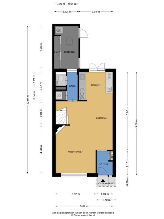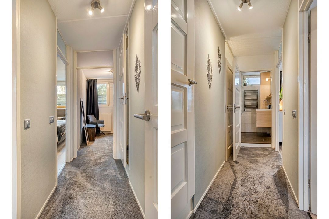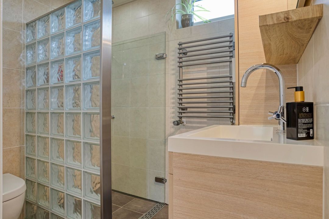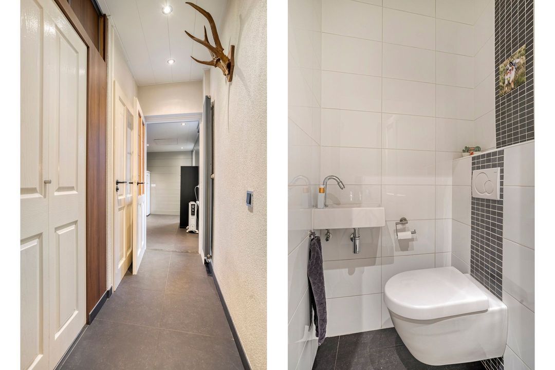 Naast de keuken bevindt zich een gang met een toiletruimte en een aparte wasruimte. Een groot pluspunt is de praktische bijkeuken met een vaste kastenwand, ideaal voor extra bergruimte en het netjes organiseren van huishoudelijke zaken.