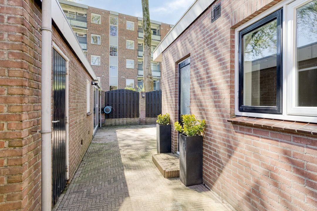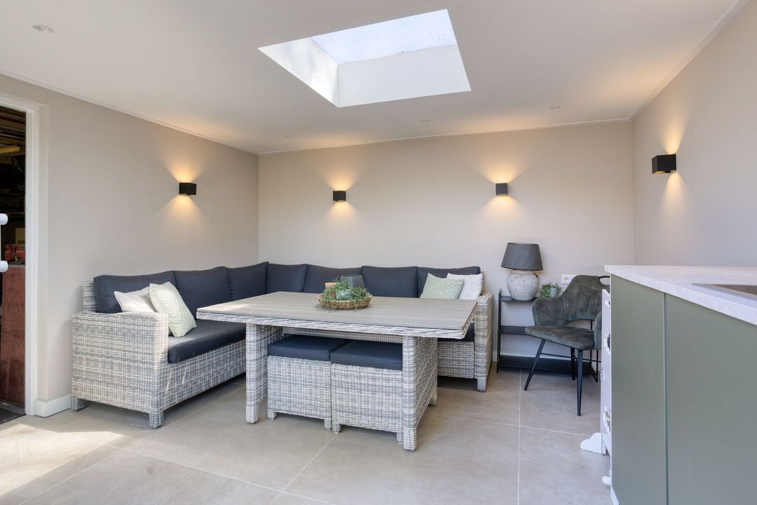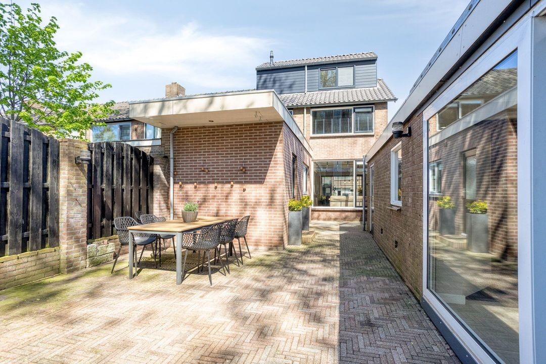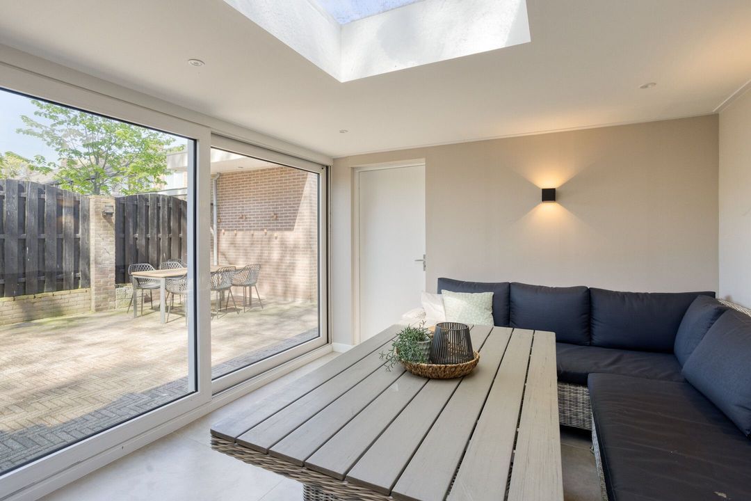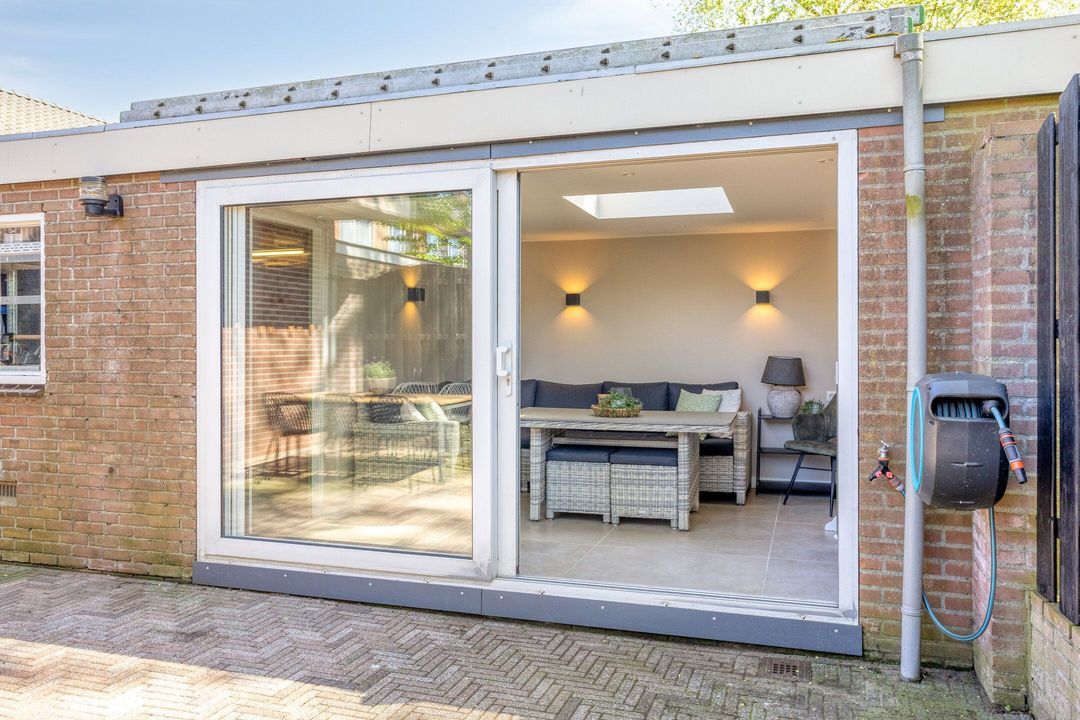 De fraai aangelegde achtertuin is gelegen op het zuiden, waardoor u hier optimaal van de zon kunt genieten. De tuin biedt veel privacy en beschikt over toegang tot de ruime garage. Daarnaast is er een prachtig afgewerkte, volledig afsluitbare buitenkamer/serre, een ideale plek om het hele jaar door buiten te zitten.