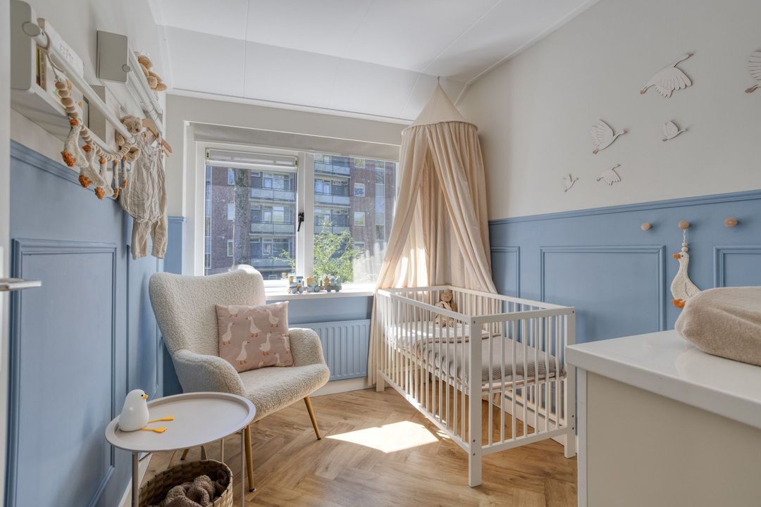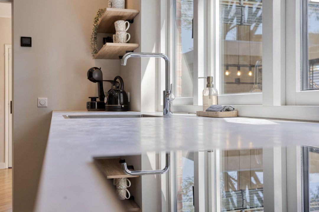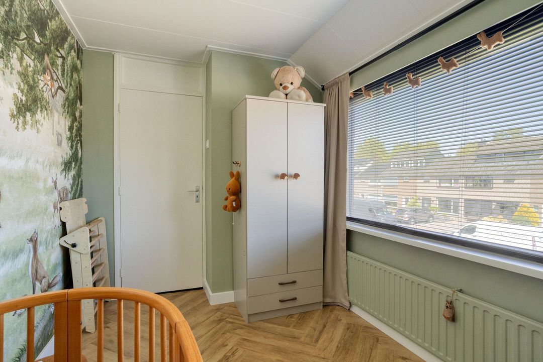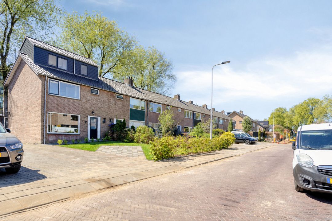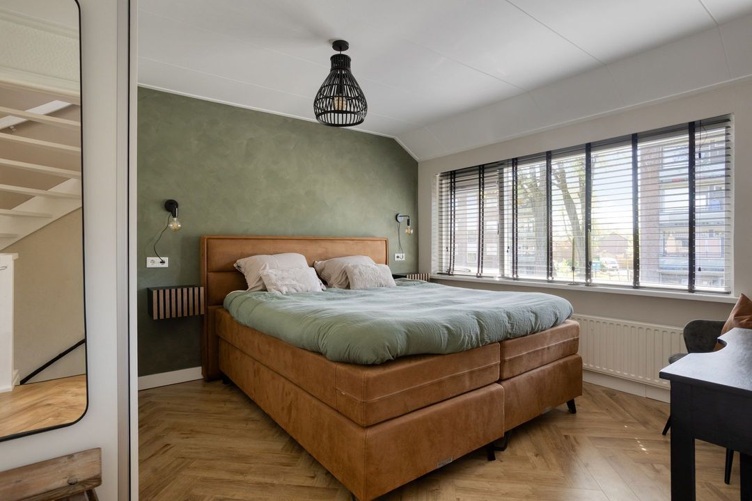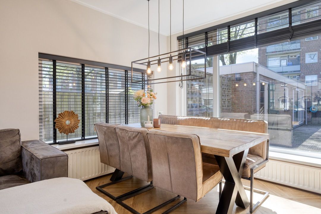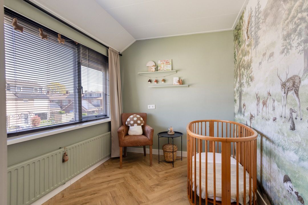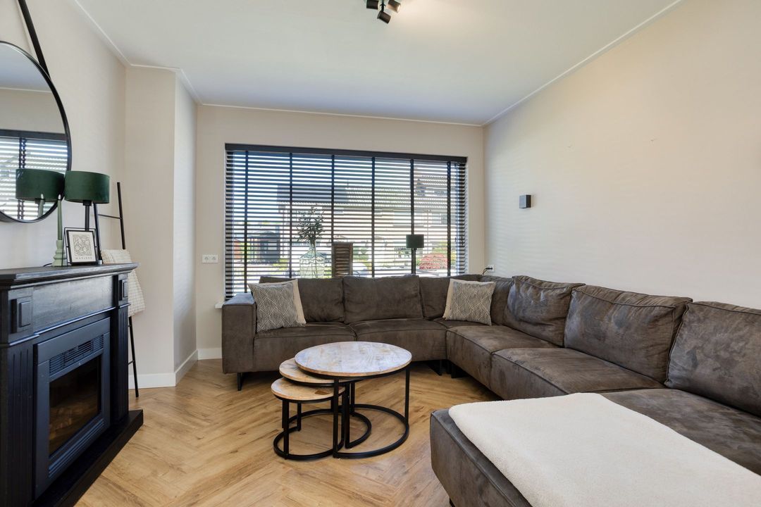 Via de entree komt u in de hal met modern toilet, trapopgang en praktische trapkast. De lichte woonkamer valt direct op door de grote raampartijen die zorgen voor een prettige lichtinval en een ruimtelijk gevoel. De keurige visgraat laminaatvloer geeft het geheel een moderne en warme uitstraling. Aan de achterzijde, in de uitbouw, bevindt zich de moderne keuken (2023), die is voorzien van alle gewenste inbouwapparatuur. Aansluitend vindt u de bijkeuken/achterentree met toegang tot de achtertuin.