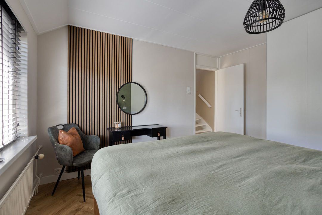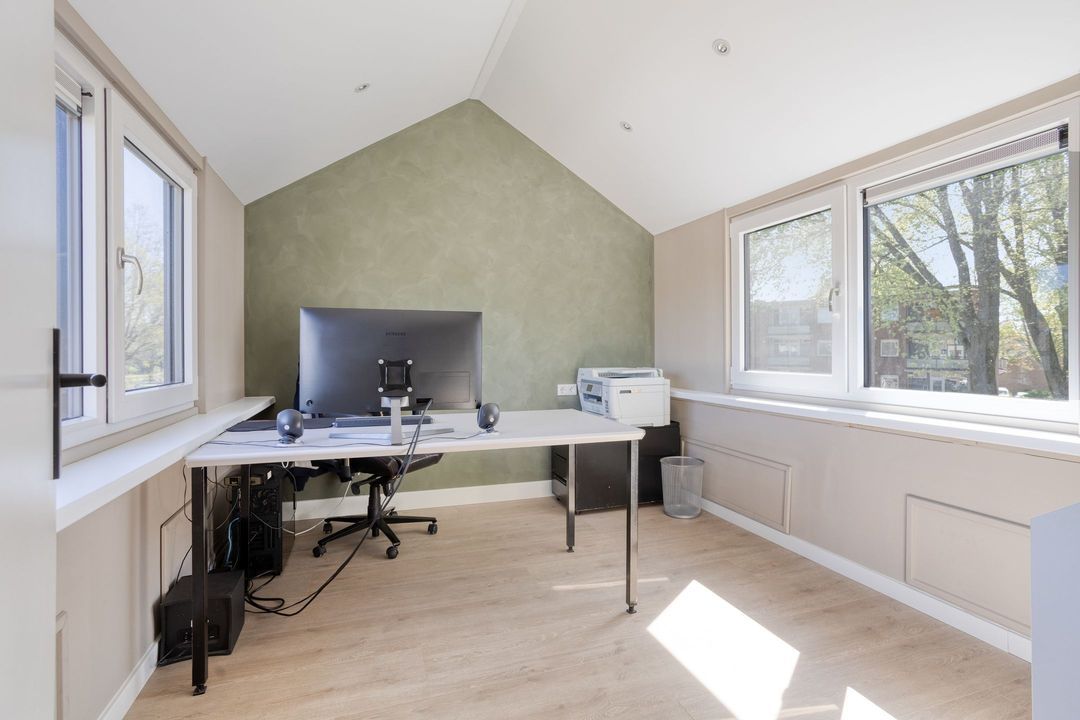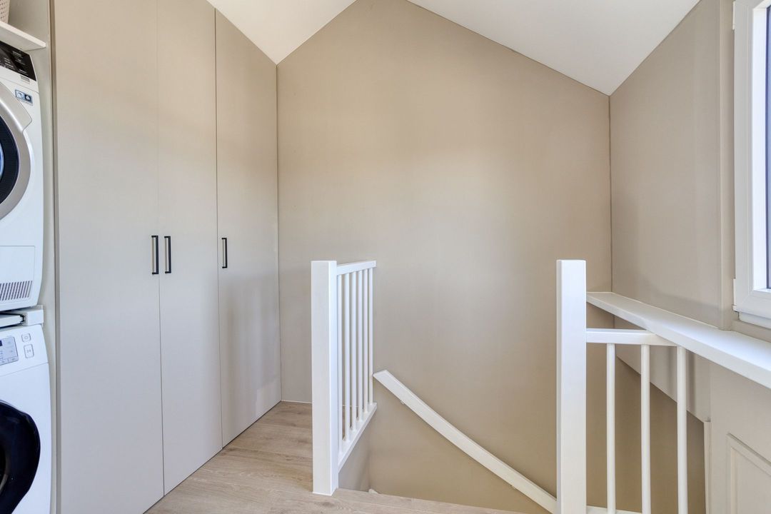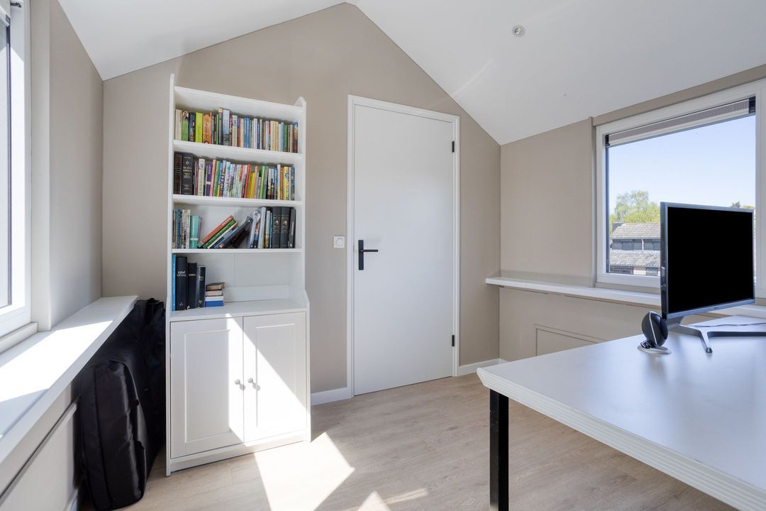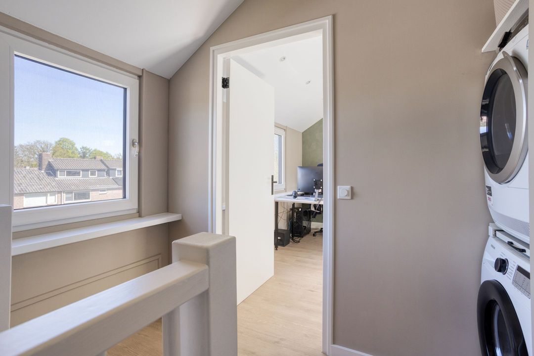 Via een vaste trap bereikt u de royale zolderverdieping. Hier vindt u een ruime voorzolder met veel bergruimte en de opstelling voor wasmachine en droger. Daarnaast is er een volwaardige vierde slaapkamer of werkkamer gerealiseerd. De dakopbouw met kunststof kozijnen zorgt voor extra comfort en licht.