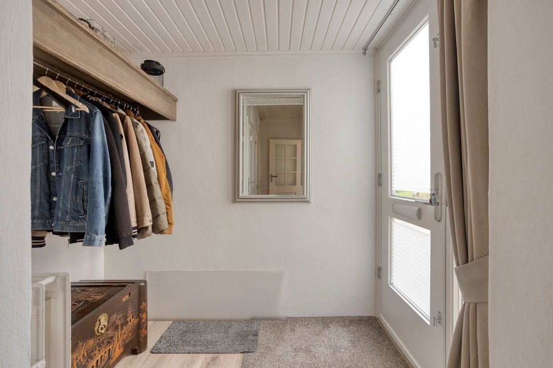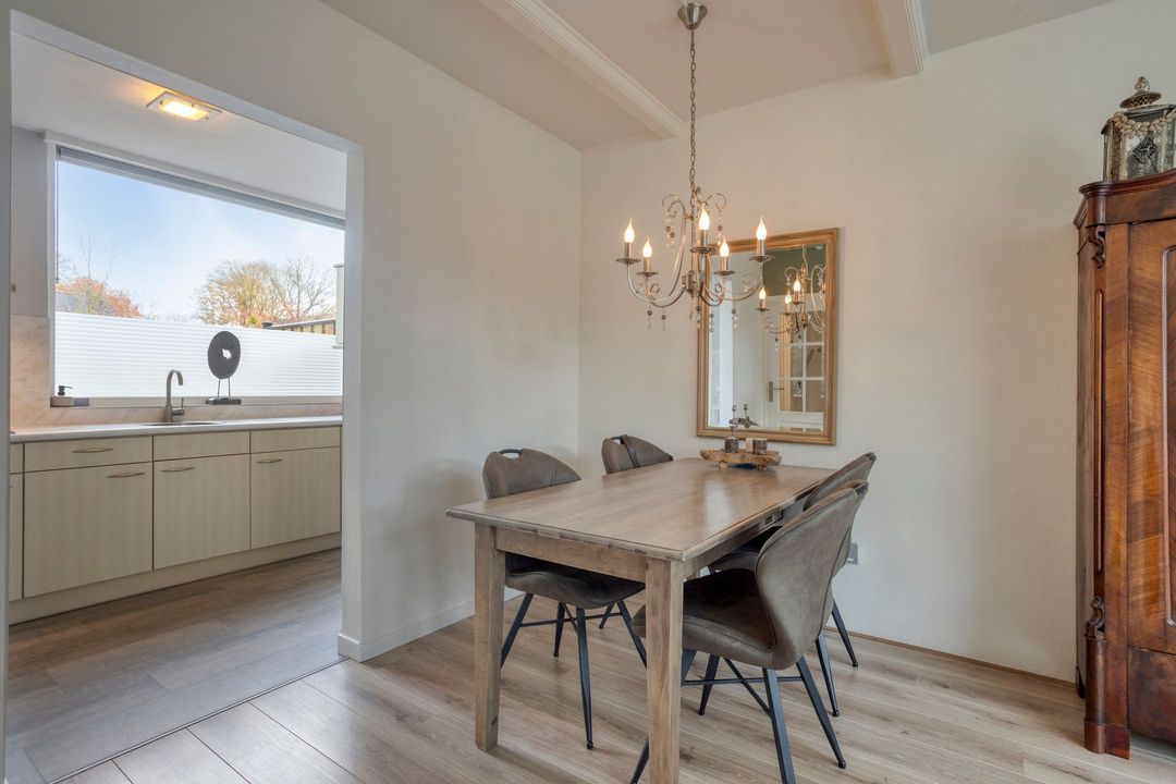 Entree met ruime hal, modern toilet met fonteintje (2024) en een praktische voorraadkast. De keuken, in hoekopstelling, bevindt zich aan de voorzijde van de woning en kijkt uit over het speelveld. De tuingerichte woonkamer heeft veel lichtinval, een nette laminaatvloer en keurig afgewerkte wanden en plafonds. Via de deur aan de achterzijde is de tuin bereikbaar.
