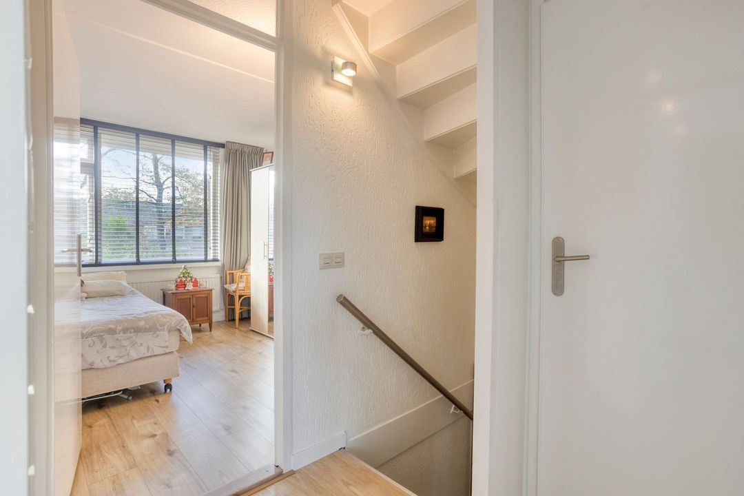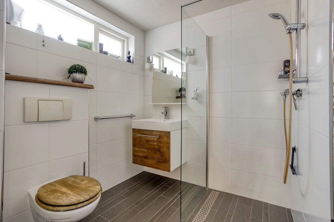 Overloop met drie ruime slaapkamers, waarvan één met een royale kastenwand. De badkamer (2015) is netjes afgewerkt en voorzien van een inloopdouche, wastafelmeubel en toilet.