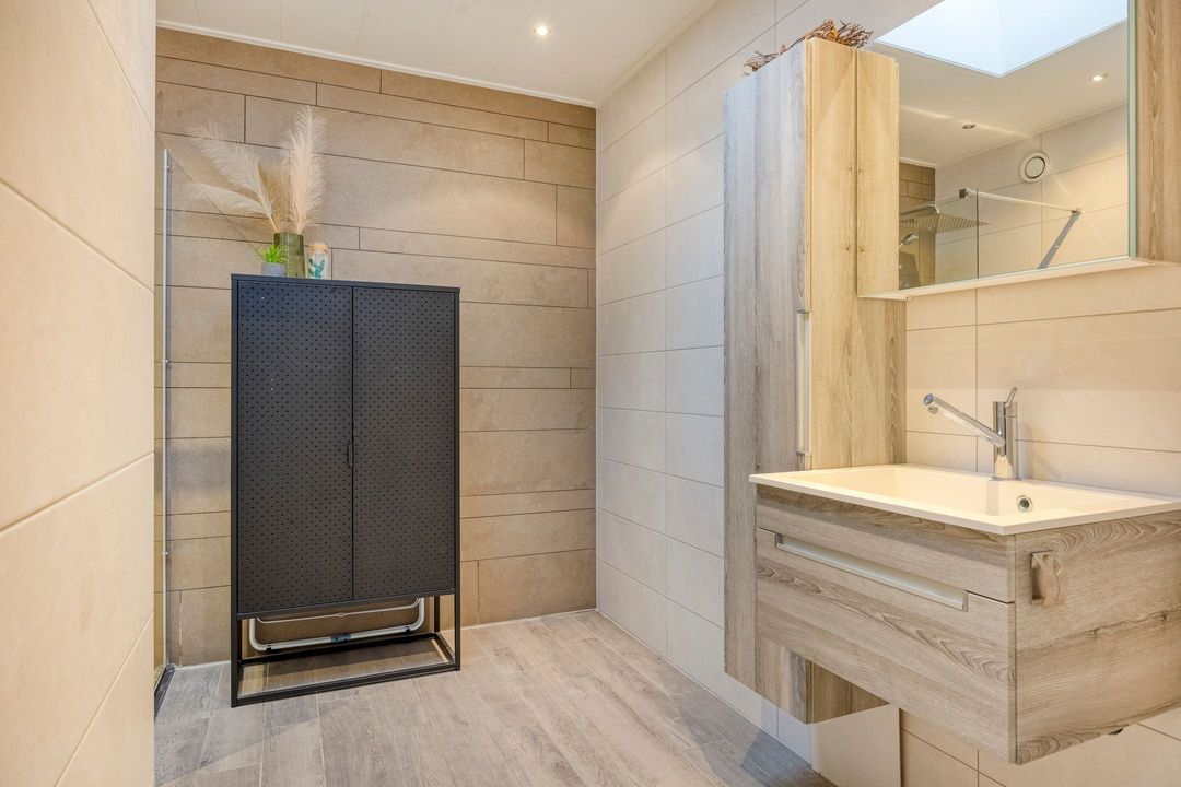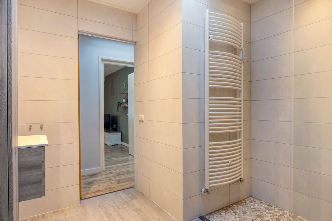 - Lichte laminaatvloer, vloerverwarming en airco in woonkamer en slaapkamer