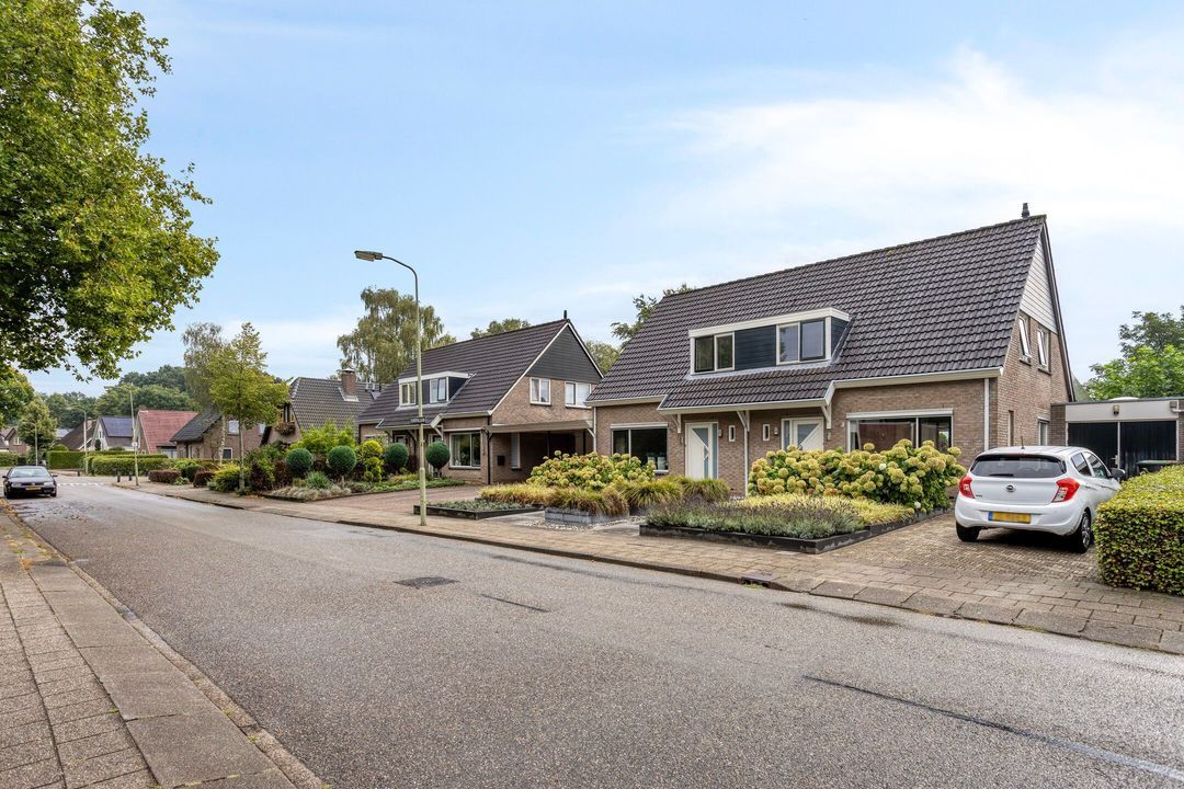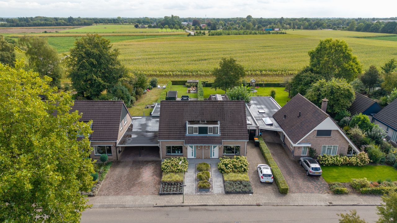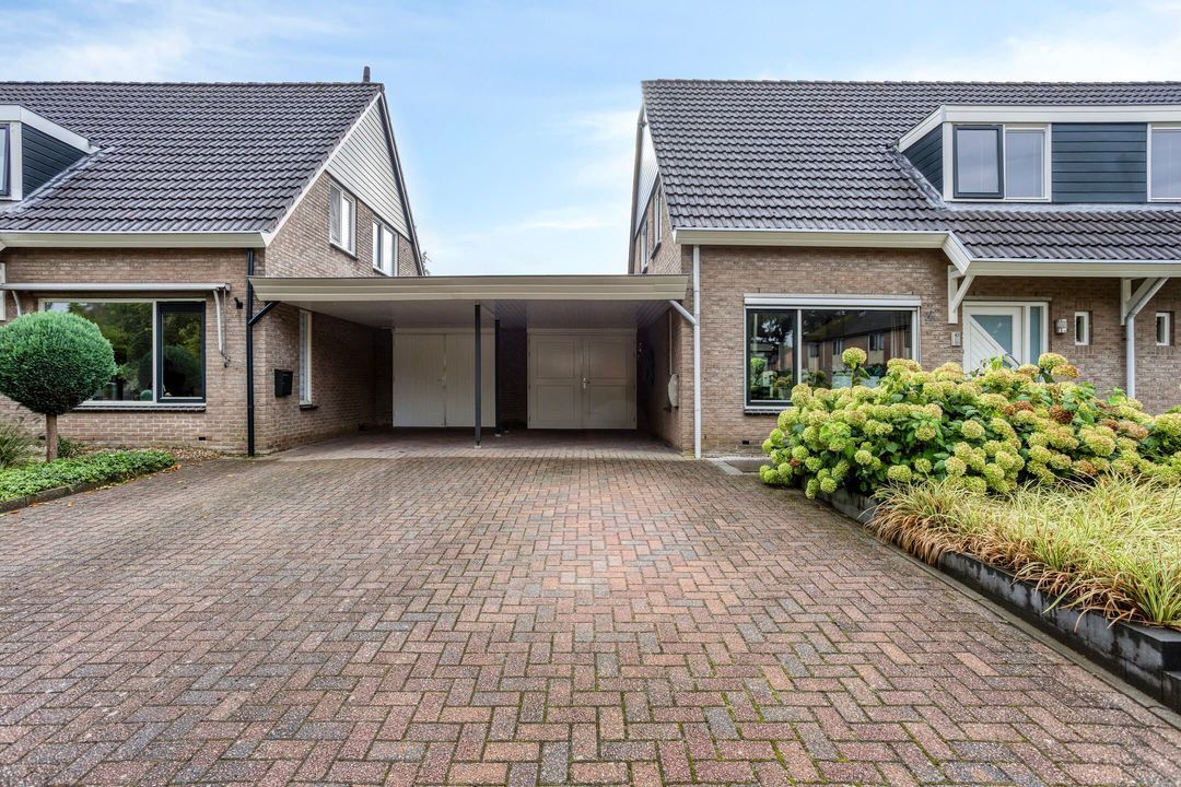 Aan de rand van de bebouwde kom staat deze uitstekend onderhouden en royaal uitgebouwde twee-onder-een-kapwoning met carport en berging, gelegen op een perceel van maar liefst 494 m², waarvan 88 m² huurgrond.