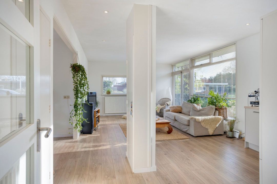 Bij binnenkomst verwelkomt de overdekte entree u, gevolgd door een ruime hal met garderobe en meterkast. De royale, lichte woonkamer, met een prachtig uitzicht op de tuin, is een ware oase van rust. Grote openslaande deuren leiden naar het terras aan de voorzijde, terwijl aan de achterzijde een gezellige eetkamer met eveneens openslaande deuren wacht. De moderne keuken (2024) is voorzien van diverse inbouwapparatuur en biedt een plek waar kookplezier en functionaliteit samenkomen.