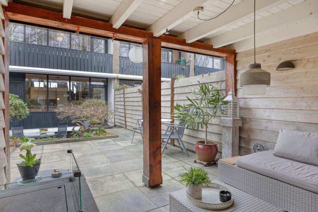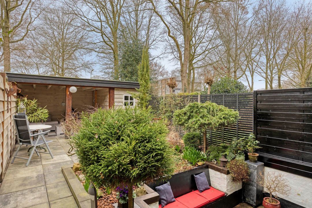 De verzorgde, besloten achtertuin ligt op het westen en beschikt over een fijne veranda en een berging. Door de ligging aan een plantsoen geniet u hier van veel rust en privacy.