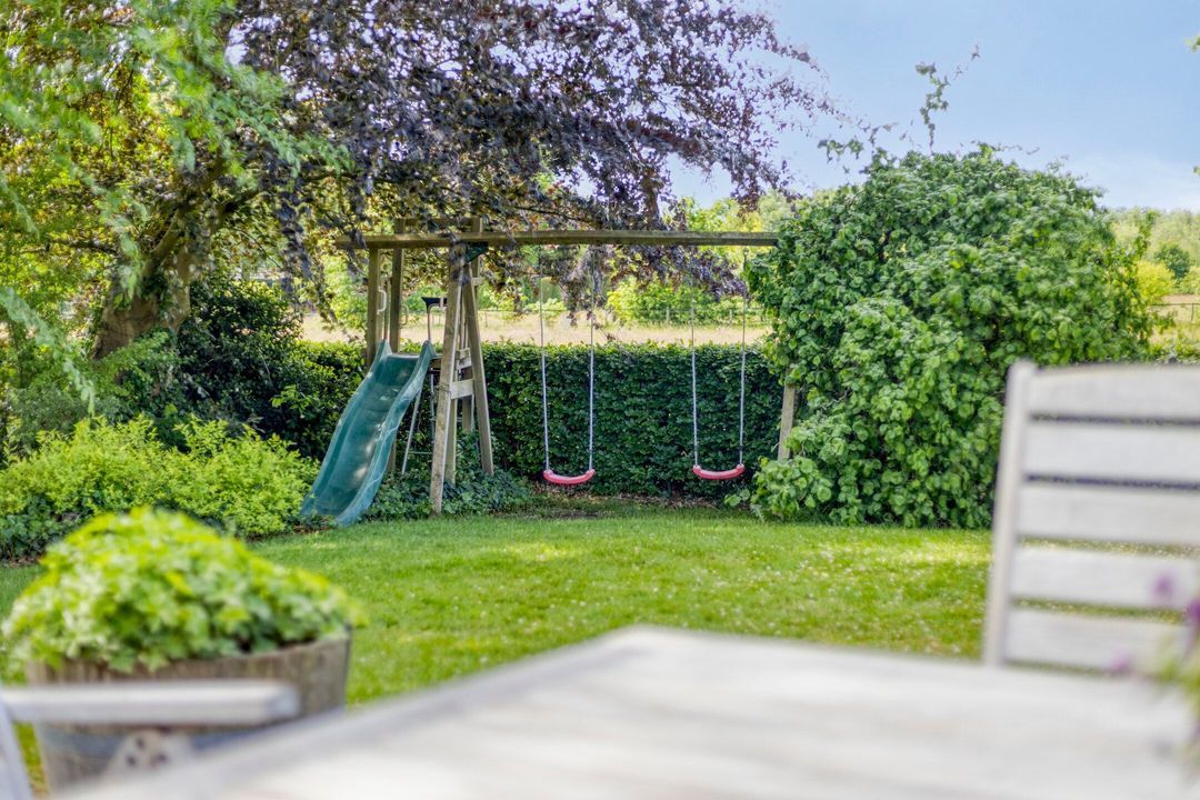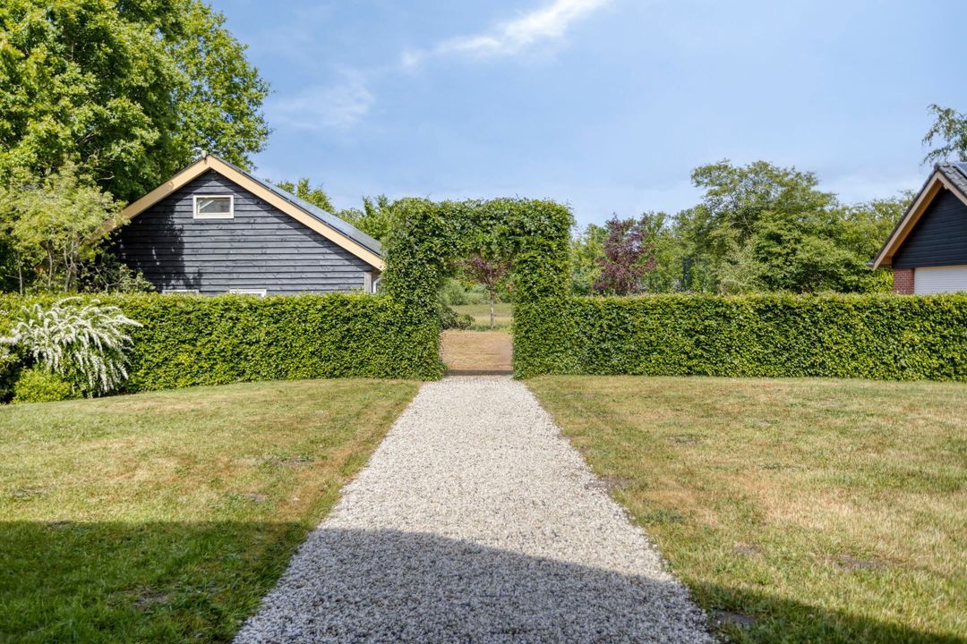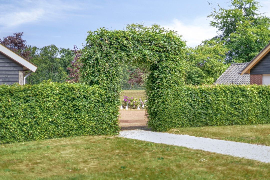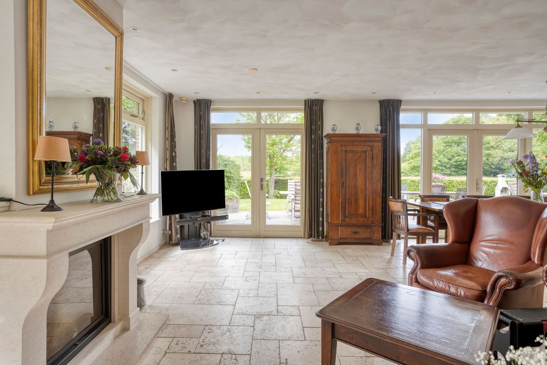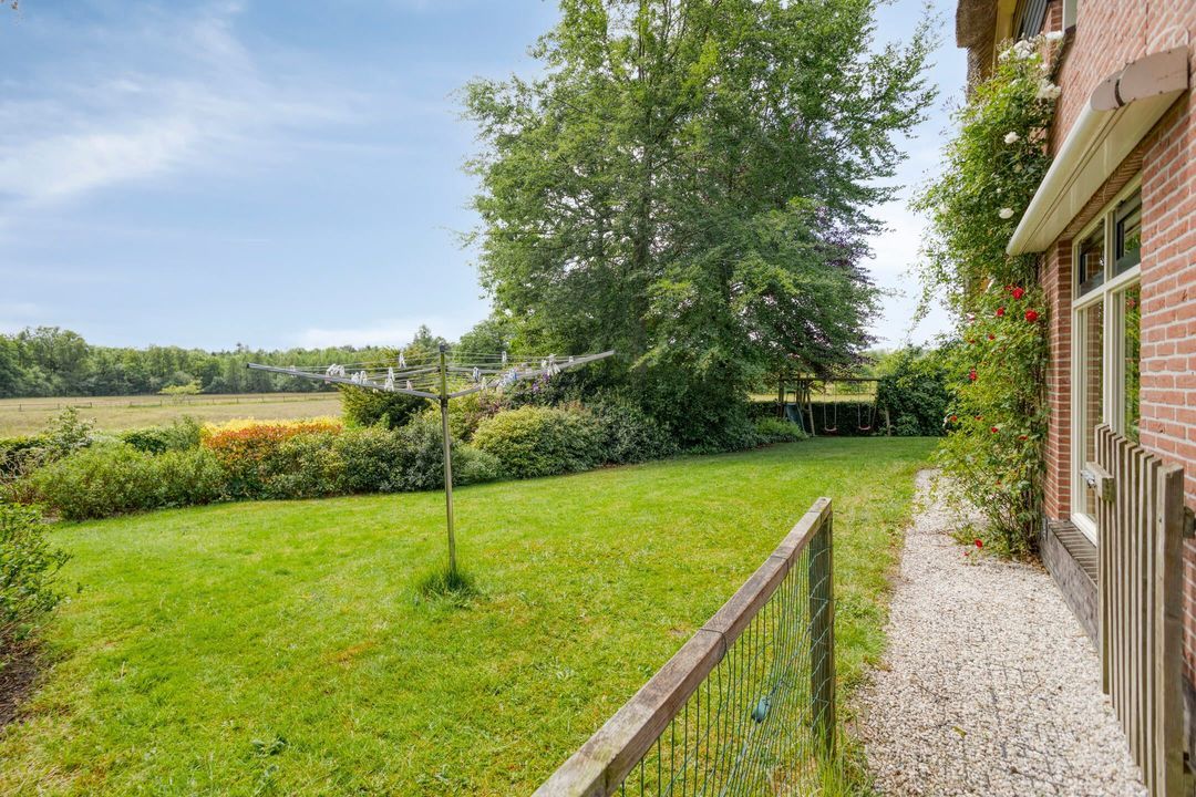 Het buitenterrein is met zorg en oog voor detail aangelegd en biedt een waar buitenparadijs. Waanzinnige doorkijkjes, diverse terrassen, aan de woning vindt u zonneschermen, welke een fijne schaduwplek in de zomer vormen. Verder is het voorzien van een fraai aangelegde siertuin, glooiende grasvelden, een natuurlijke vijver, bomen en hagen. Hier geniet u volop van privacy, rust, ruimte en het ultieme buitenleven. Eventueel is er extra weiland bij te kopen van ca. 17.450 m².