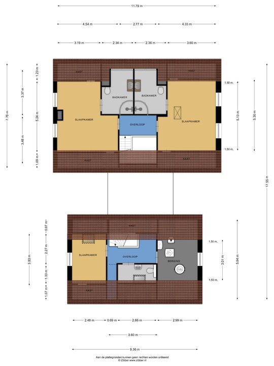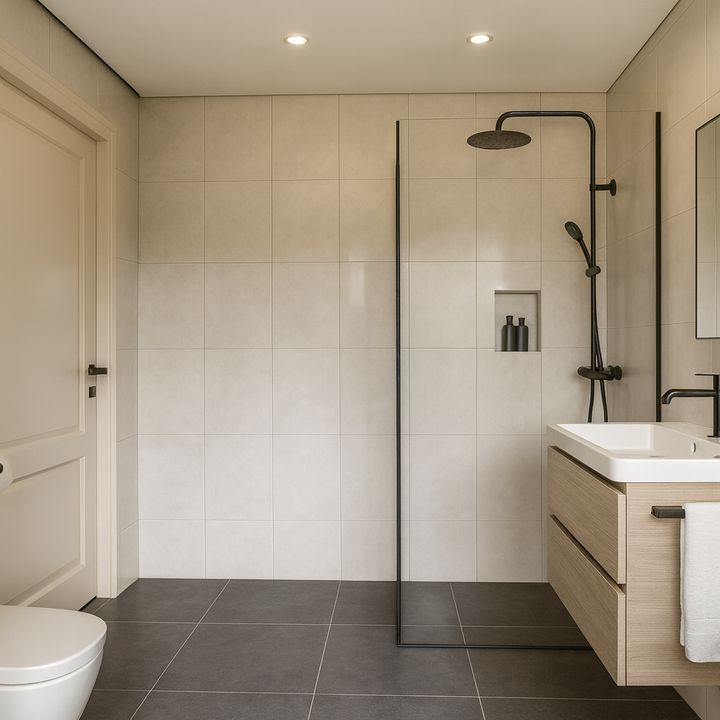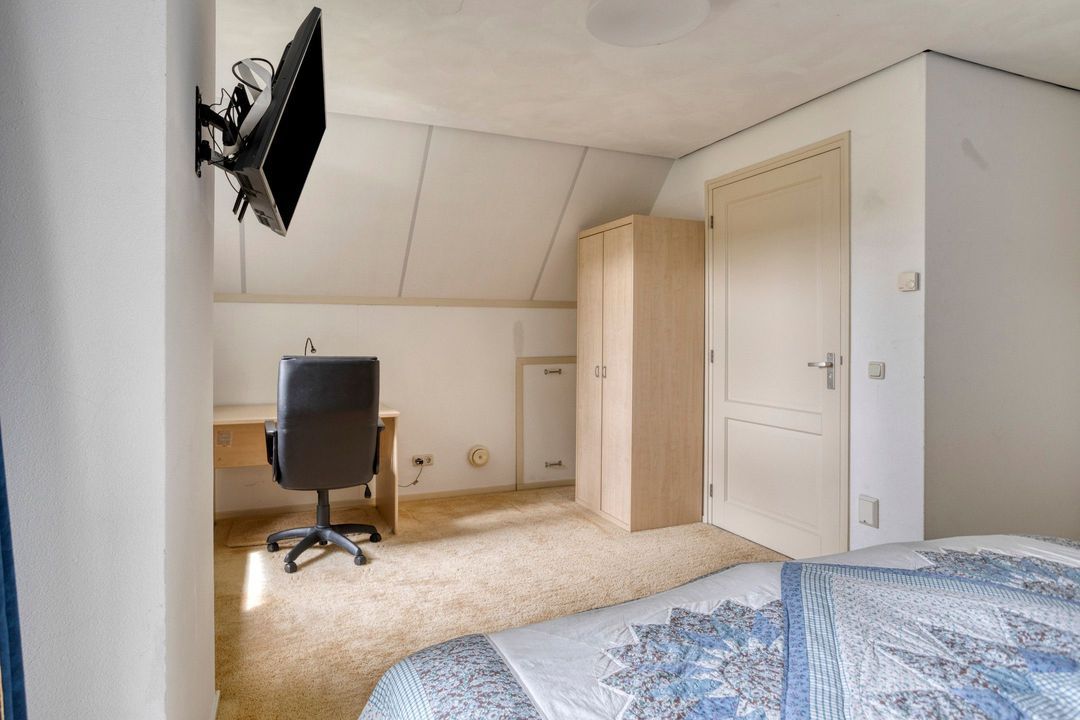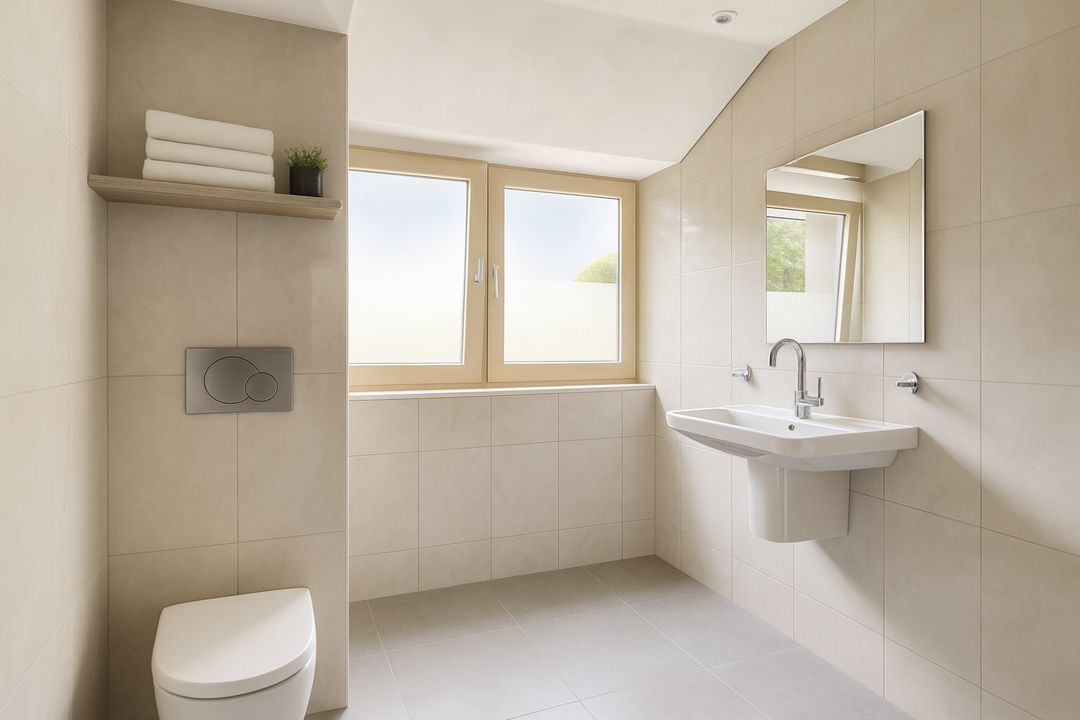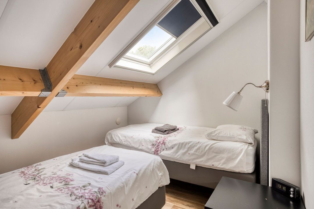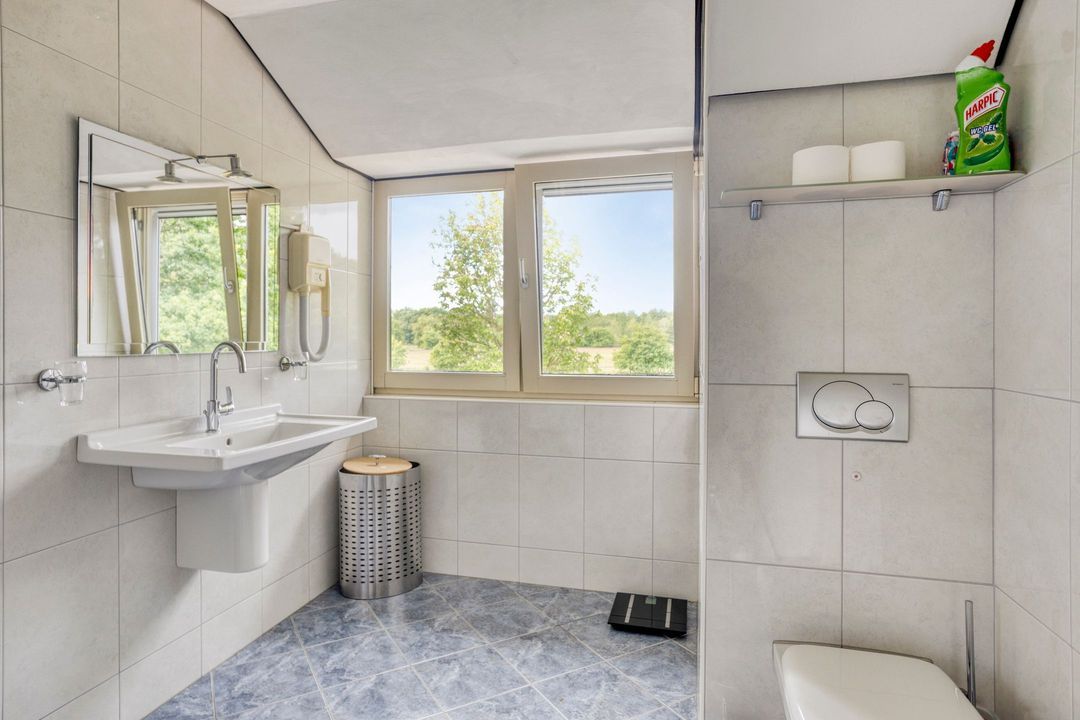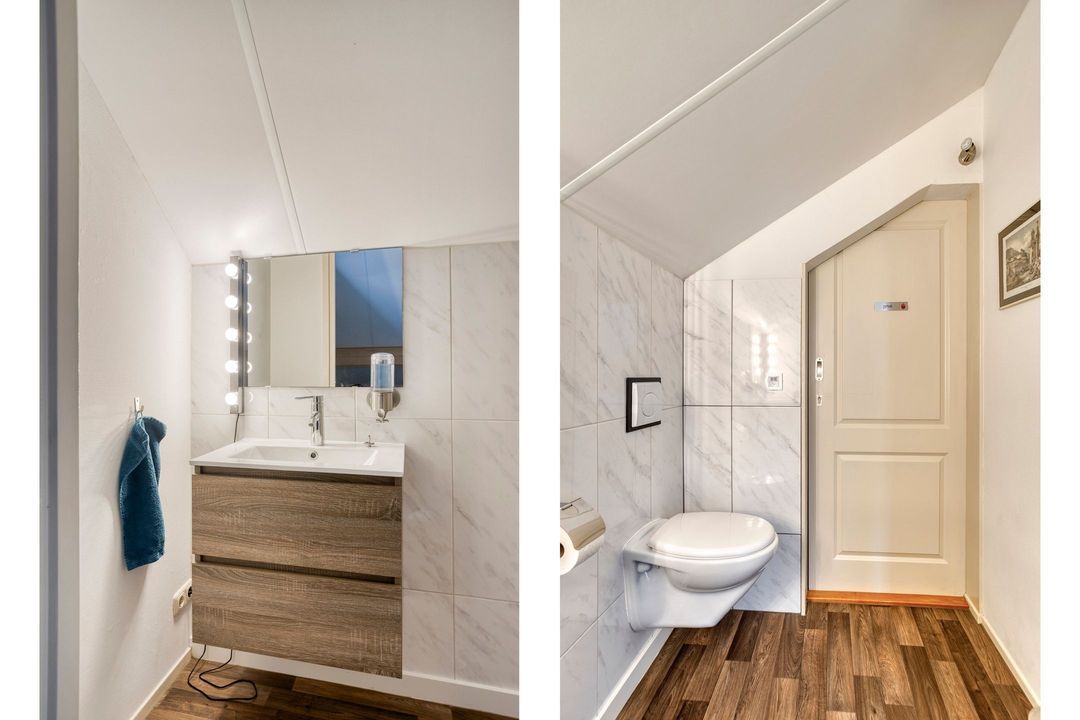 Vanuit de hal bereikt u de verdieping. Deze verdieping biedt twee royale slaapkamers, beide met een eigen badkamer ensuite. Naast de bijkeuken beneden bevindt zich ook een tweede trapopgang met een eigen overloop met een slaapkamer en separaat toiletruimte met wastafel. Aan de andere zijde zit de technische ruimte.