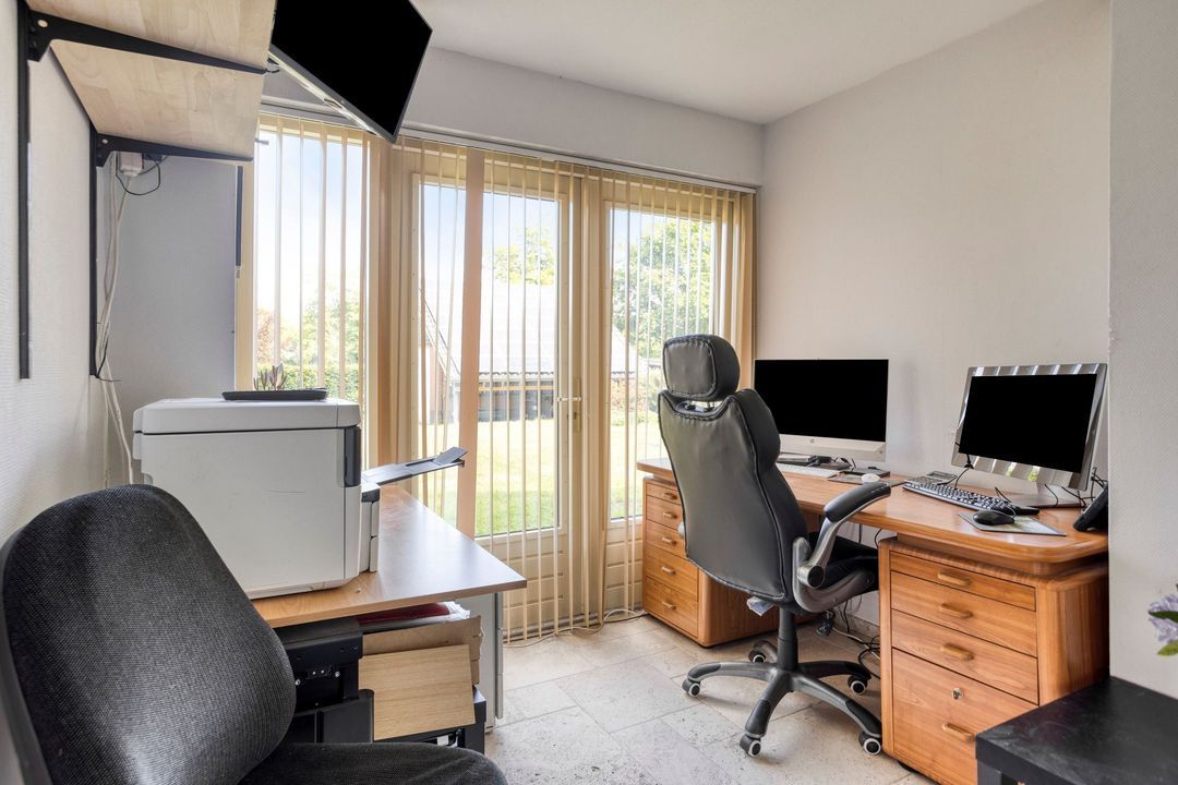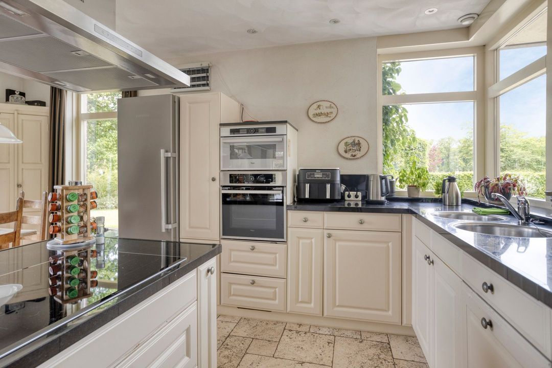 U wordt verwelkomd in een royale hal met gaderobe, kantoorruimte en een separaat toilet. De sfeervolle woonkamer met open haard en openslaande deuren naar het terras biedt volop ruimte voor gezellige avonden. De landelijke woonkeuken is voorzien van diverse inbouwapparatuur en vormt het hart van de woning. Op de begane grond bevindt zich tevens de master bedroom met een badkamer ensuite, waardoor gelijkvloers wonen mogelijk is. Naast de slaapkamer bevindt zich een praktische bijkeuken met de wasmachineaansluitingen en toegang tot het buitenterrein.
