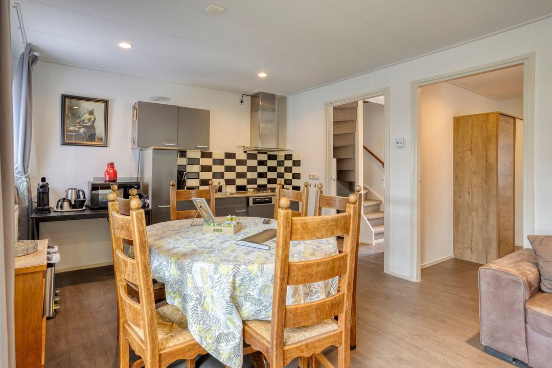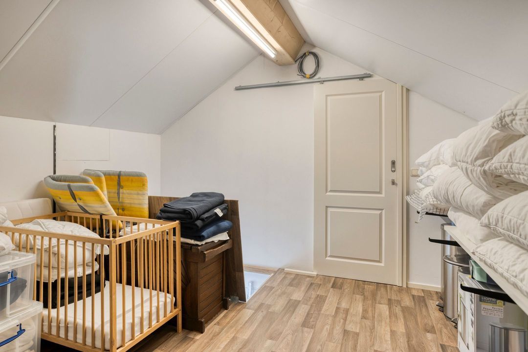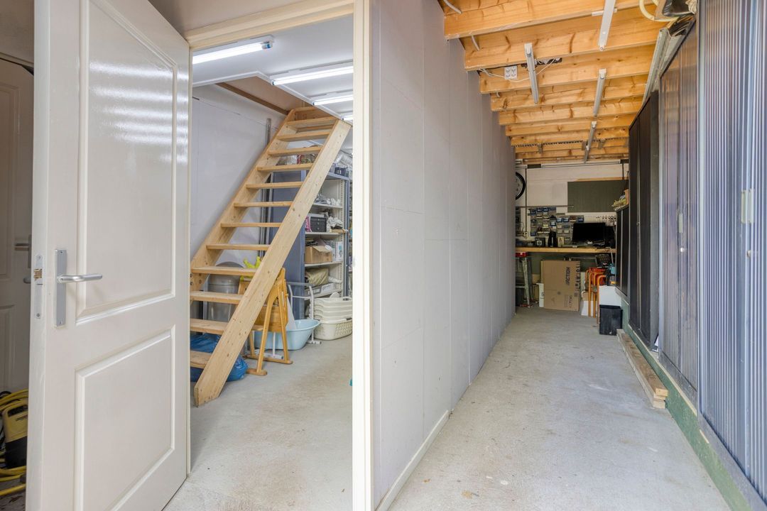 Op het binnenterrein bevindt zich een grote garage met elektrische deur, geheel voorzien van isolatie, dubbel glas en vloerverwarming. Ideaal voor het opbergen van tuinspullen, fietsen en andere benodigdheden. Daarnaast biedt een royale kapschuur parkeerruimte voor twee auto’s en extra opslagmogelijkheden.
