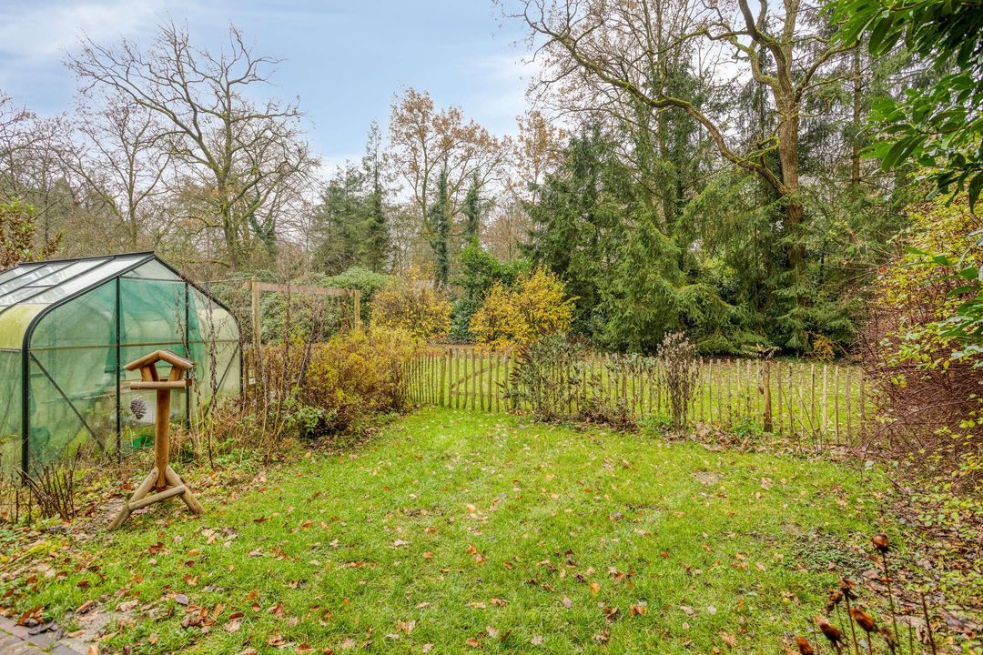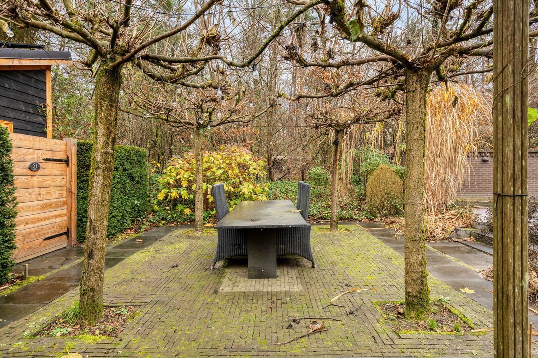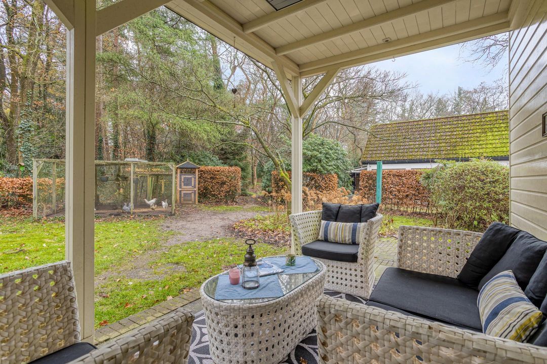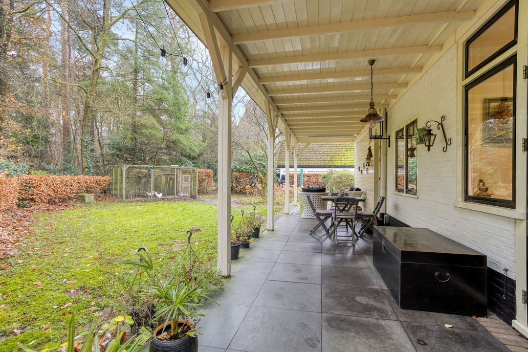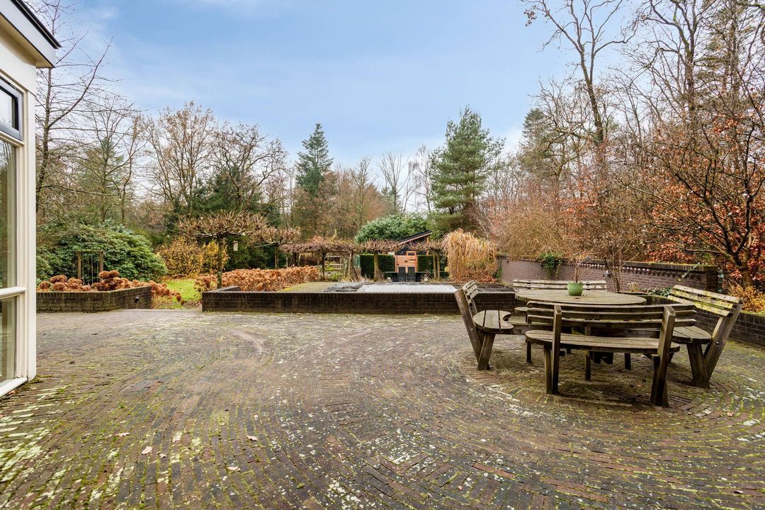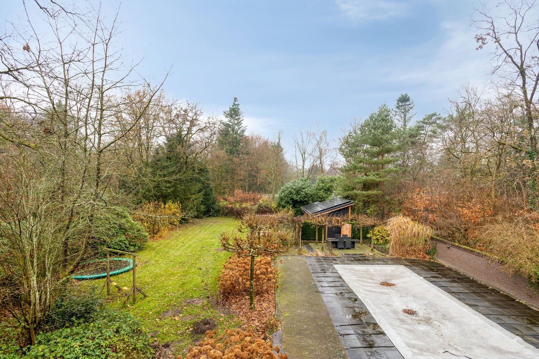 De tuin rondom de woning is groen, volgroeid en heerlijk zonnig. Een deel bestaat uit eigen bos, waardoor privacy en natuurrust optimaal zijn. Het verwarmde zwembad, aangestuurd door een energiezuinige warmtepomp, zorgt voor zwemcomfort van april tot ver in oktober. Terrassen rondom het zwembad en bij de veranda bieden volop plekken om te loungen, te dineren of te genieten van lange zomerdagen.