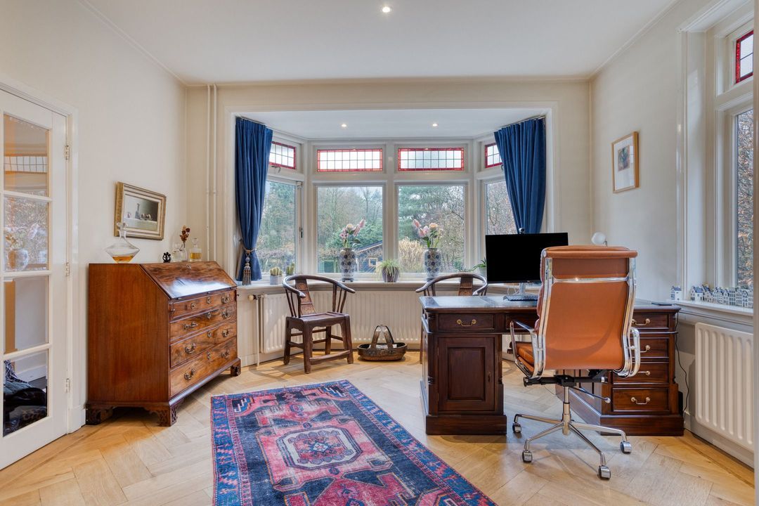 De villa is goed onderhouden en laat een harmonieuze combinatie zien van sfeer en comfort. Authentieke details zoals glas-in-lood, hoge plafonds, suite-deuren en een erker worden moeiteloos afgewisseld met modern wooncomfort. Er zijn twee werkkamers op de begane grond aanwezig, waardoor thuiswerken hier heel goed mogelijk is.