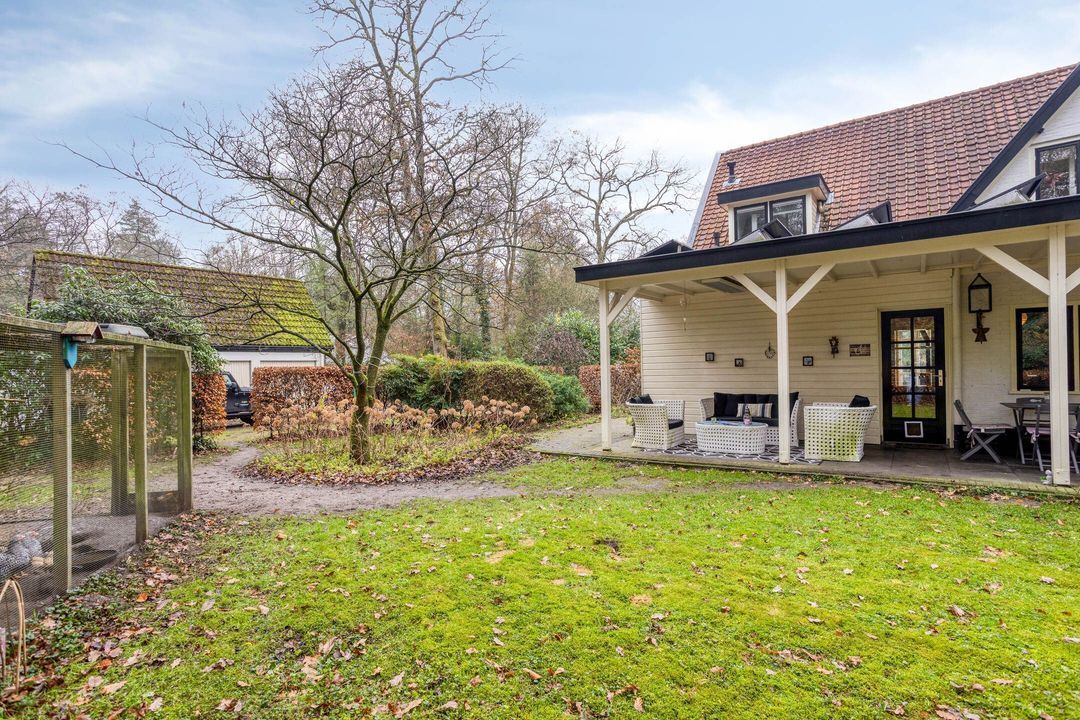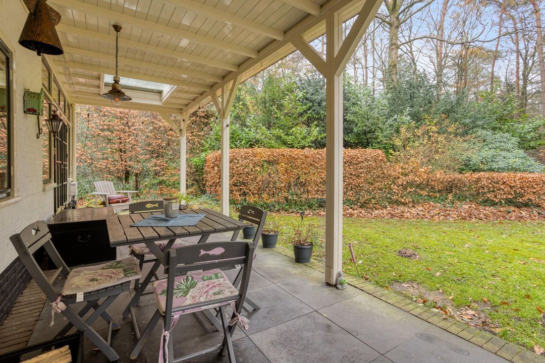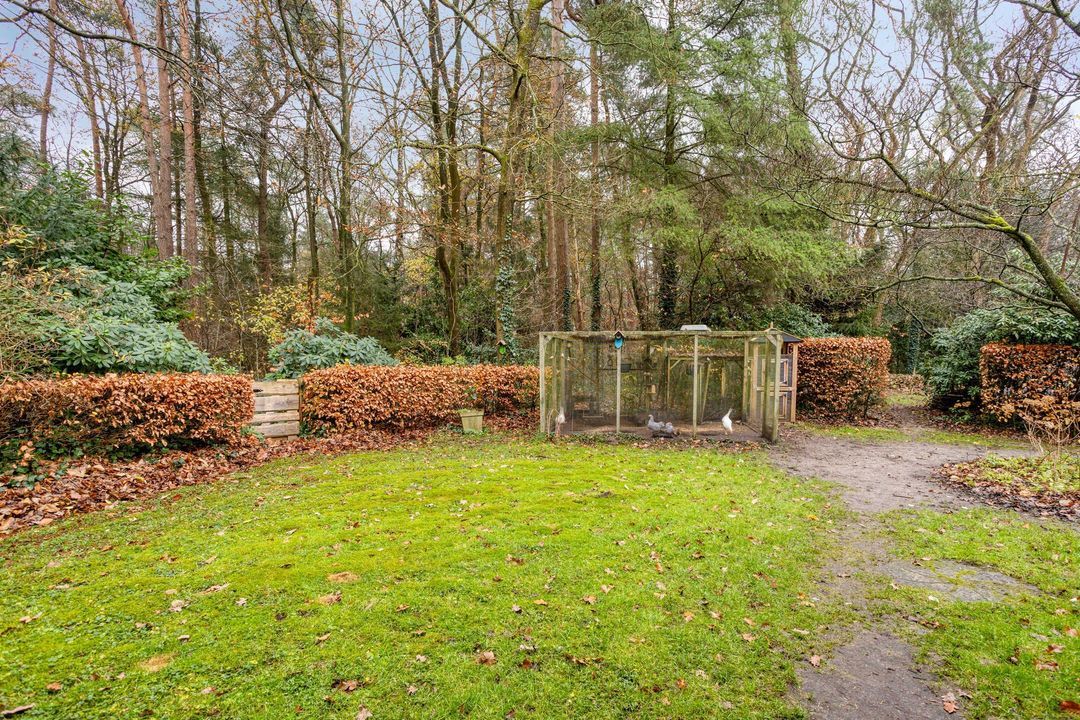 De tuin rondom de woning is groen, volgroeid en heerlijk zonnig. Een deel bestaat uit eigen bos, waardoor privacy en natuurrust optimaal zijn. Het verwarmde zwembad, aangestuurd door een energiezuinige warmtepomp, zorgt voor zwemcomfort van april tot ver in oktober. Terrassen rondom het zwembad en bij de veranda bieden volop plekken om te loungen, te dineren of te genieten van lange zomerdagen.