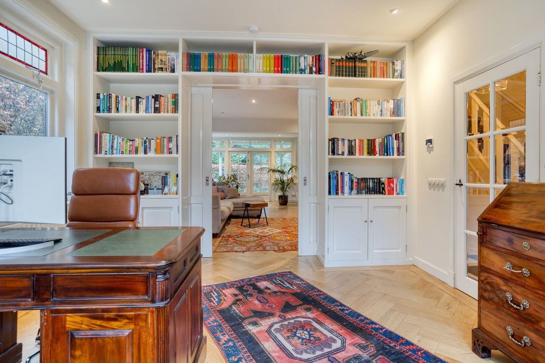 De villa is goed onderhouden en laat een harmonieuze combinatie zien van sfeer en comfort. Authentieke details zoals glas-in-lood, hoge plafonds, suite-deuren en een erker worden moeiteloos afgewisseld met modern wooncomfort. Er zijn twee werkkamers op de begane grond aanwezig, waardoor thuiswerken hier heel goed mogelijk is.