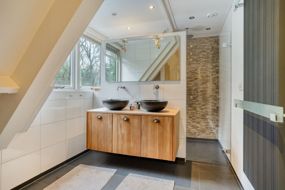 Achter de elektrische houten toegangspoort slingert een oprijlaan met rododendrons richting de villa met een woonoppervlakte van 247 m², een zonnige tuin met eigen bos en volledige privacy is dit een plek, waar elke dag voelt als vakantie. In de zomer geniet u aan het verwarmde zwembad of op het terras, terwijl de veranda met terrasverwarming op koelere avonden uitnodigt tot lange gesprekken en genieten van het uitzicht. In de winter biedt de open haard in de woonkamer of de houtkachel in de woonkeuken warmte en sfeer, waardoor het huis ieder seizoen een heerlijke plek is om te wonen.