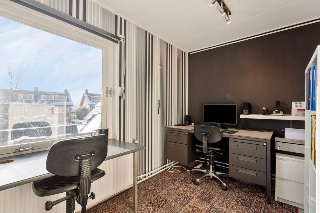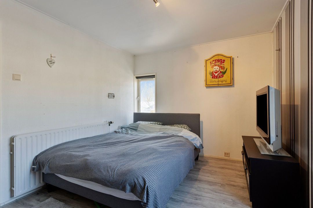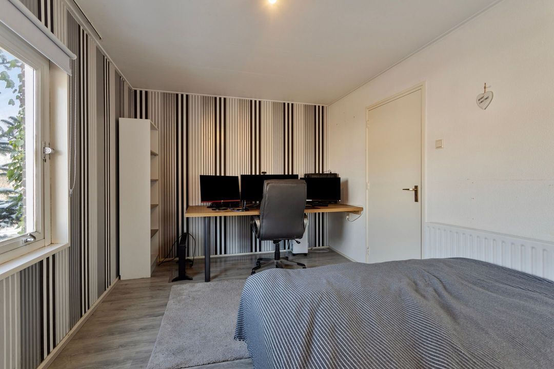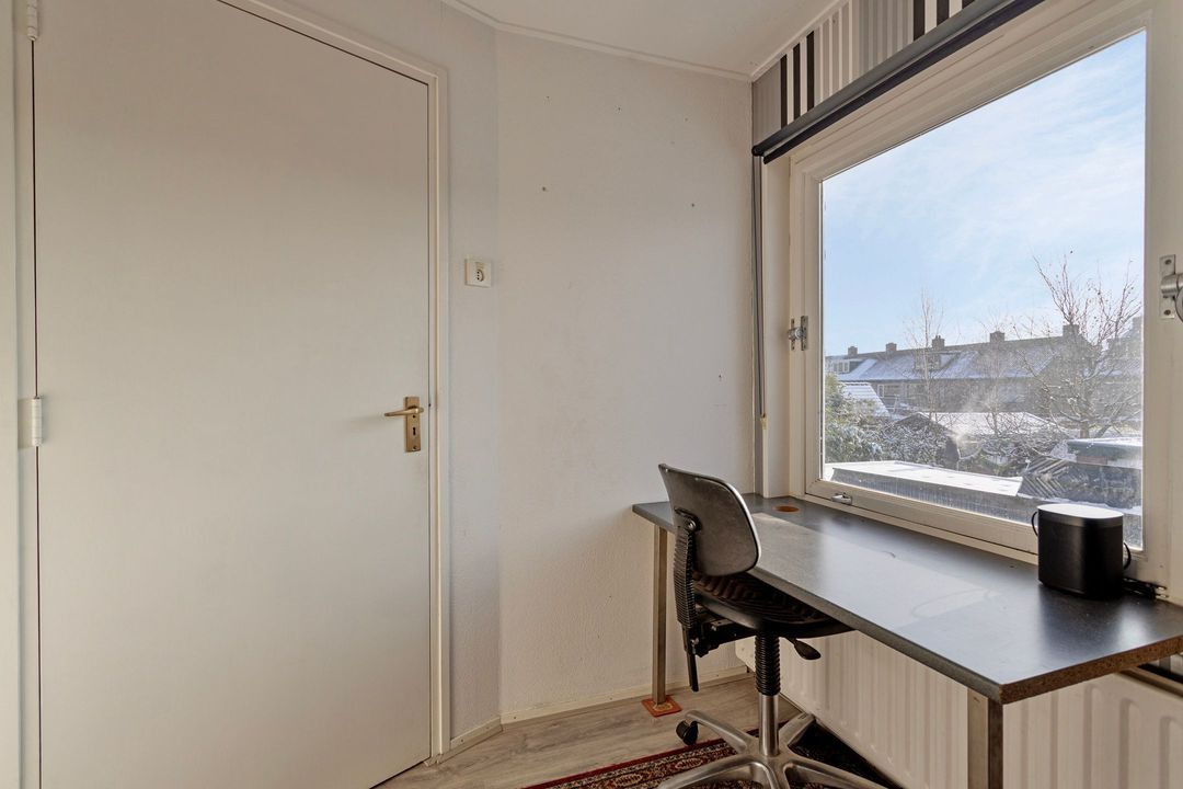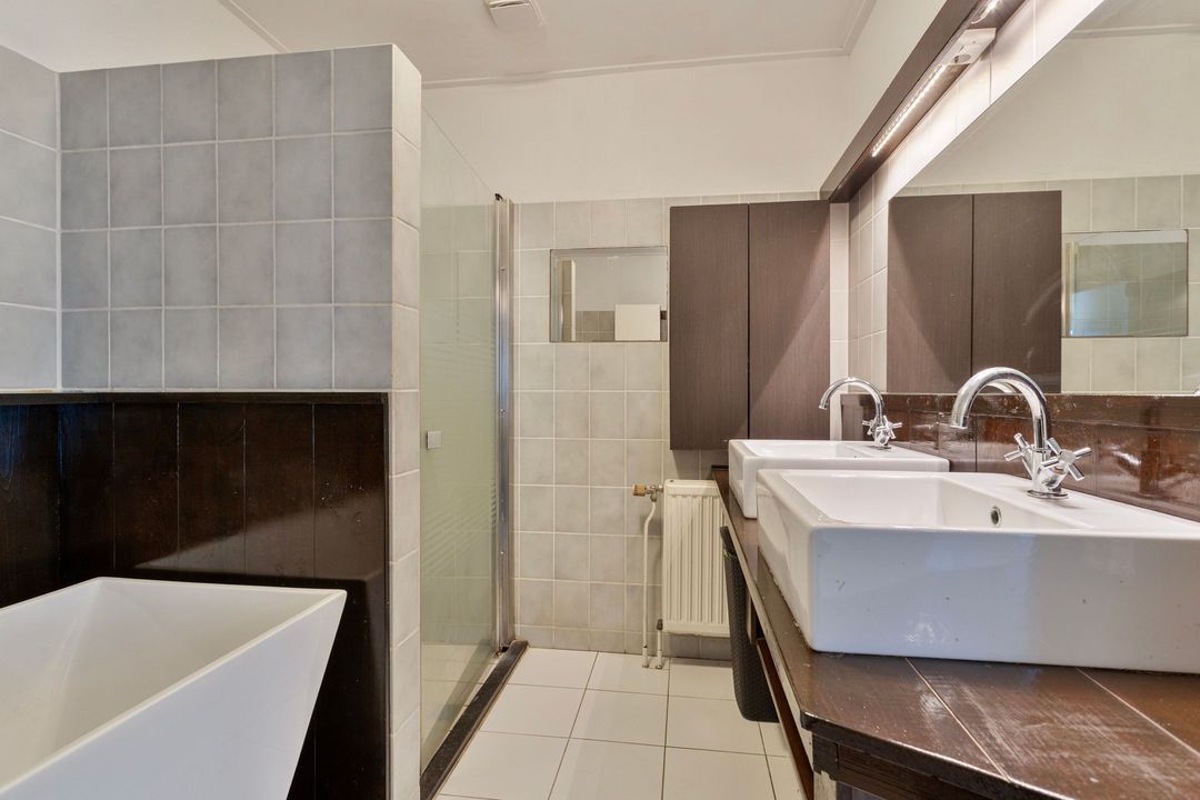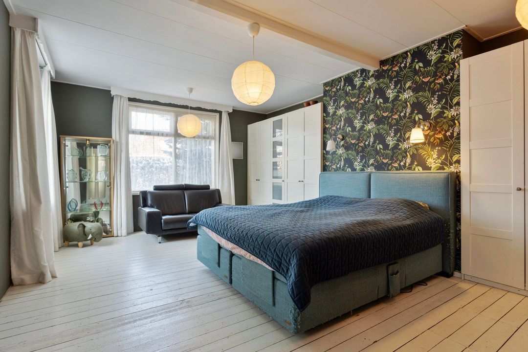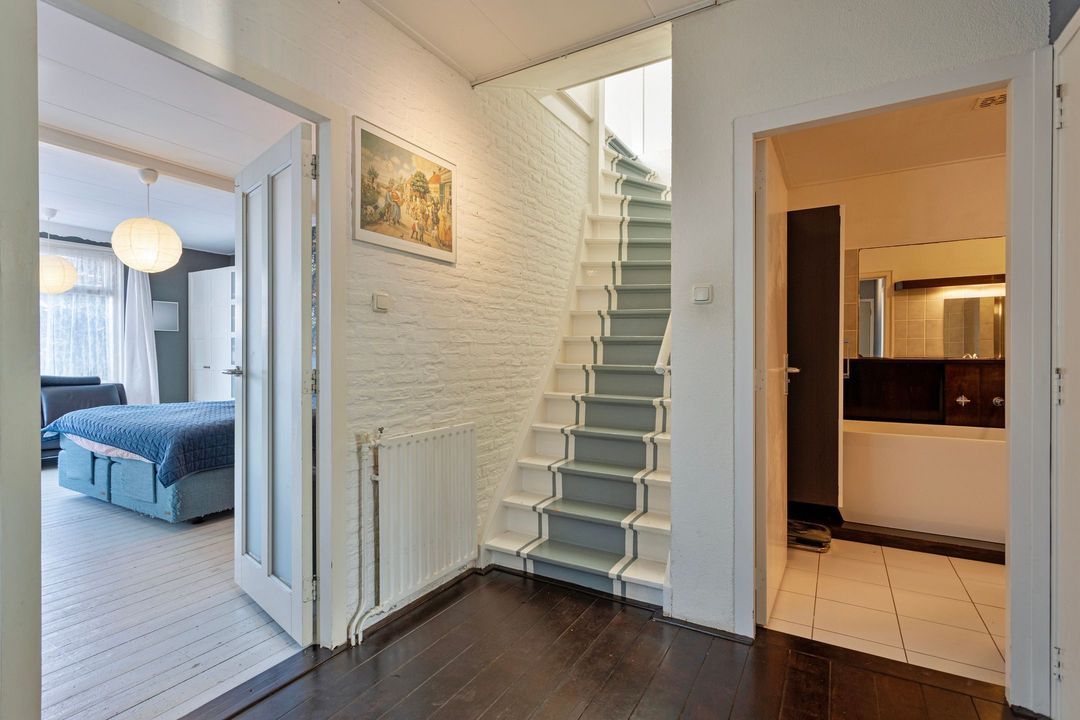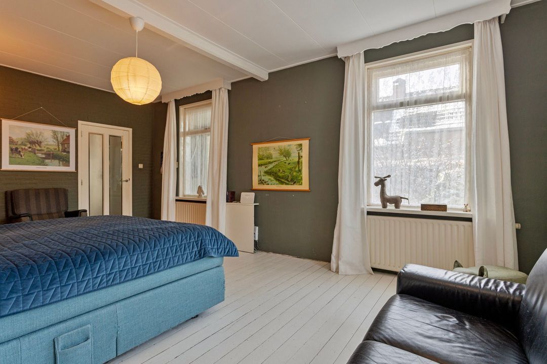 Aan de voorzijde van de woning ligt een zeer ruime slaapkamer (voorheen woonkamer). Vanuit de hal is tevens de moderne badkamer bereikbaar, uitgerust met ligbad, douche en een dubbele wastafel. Onder de trap bevindt zich een handige kelderruimte.