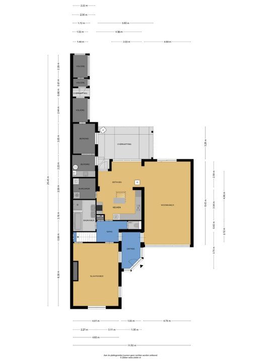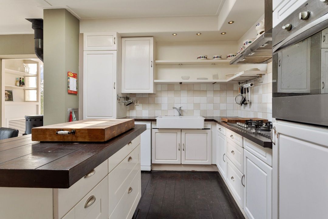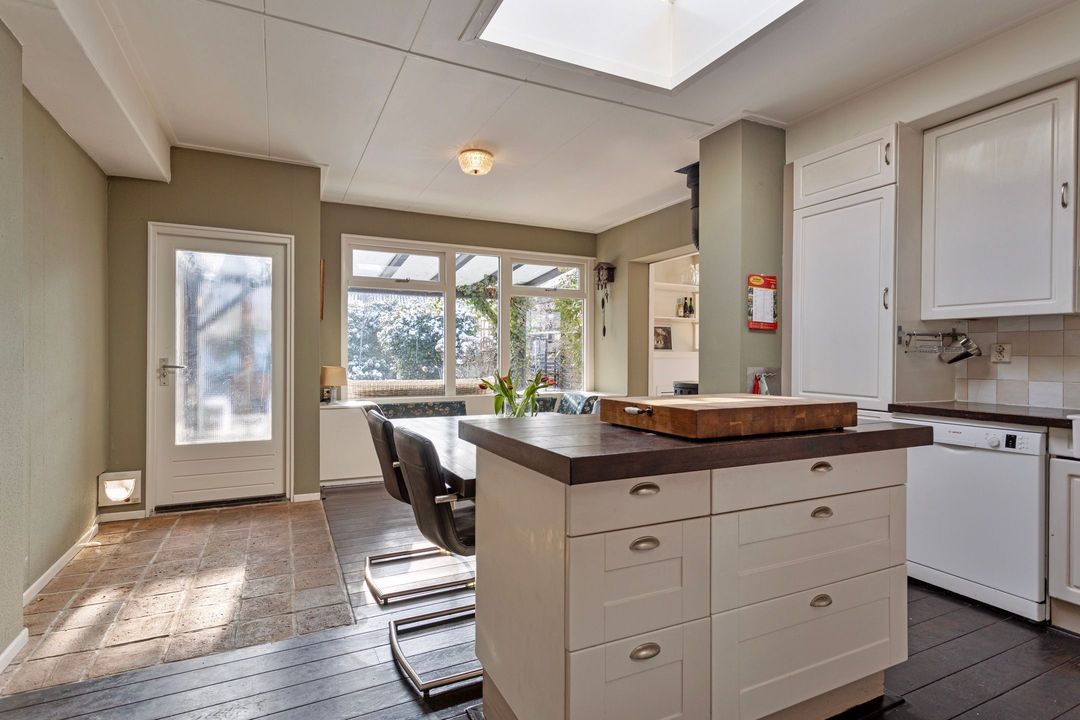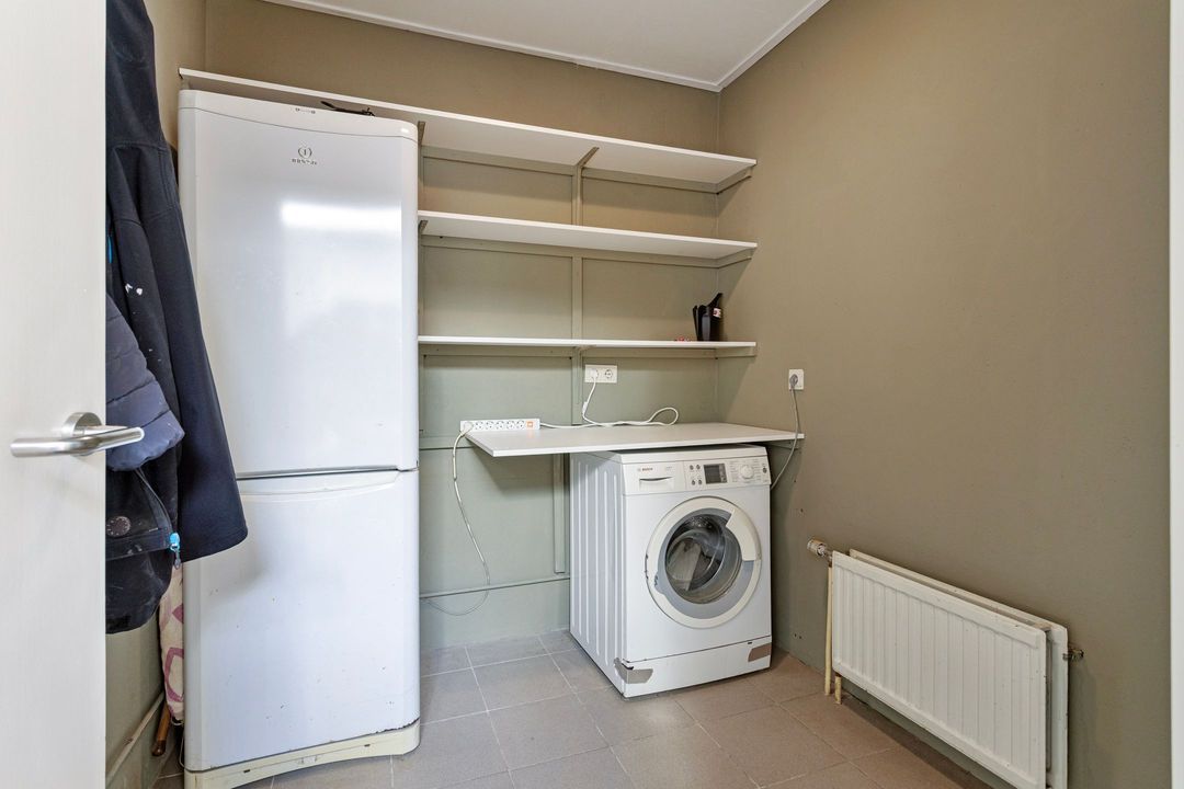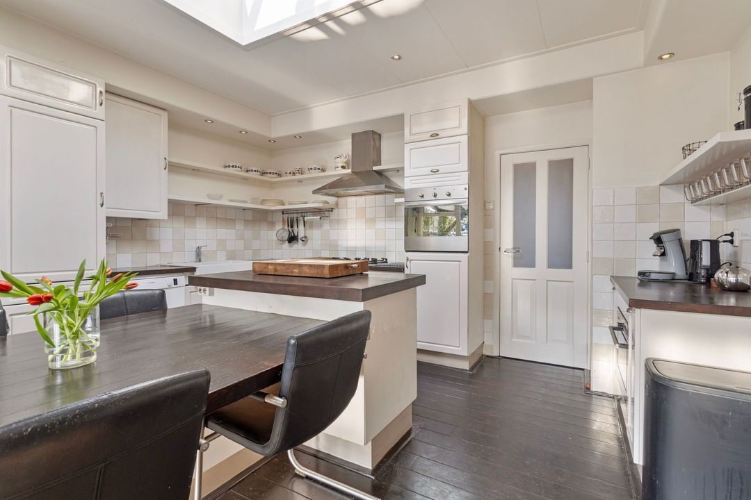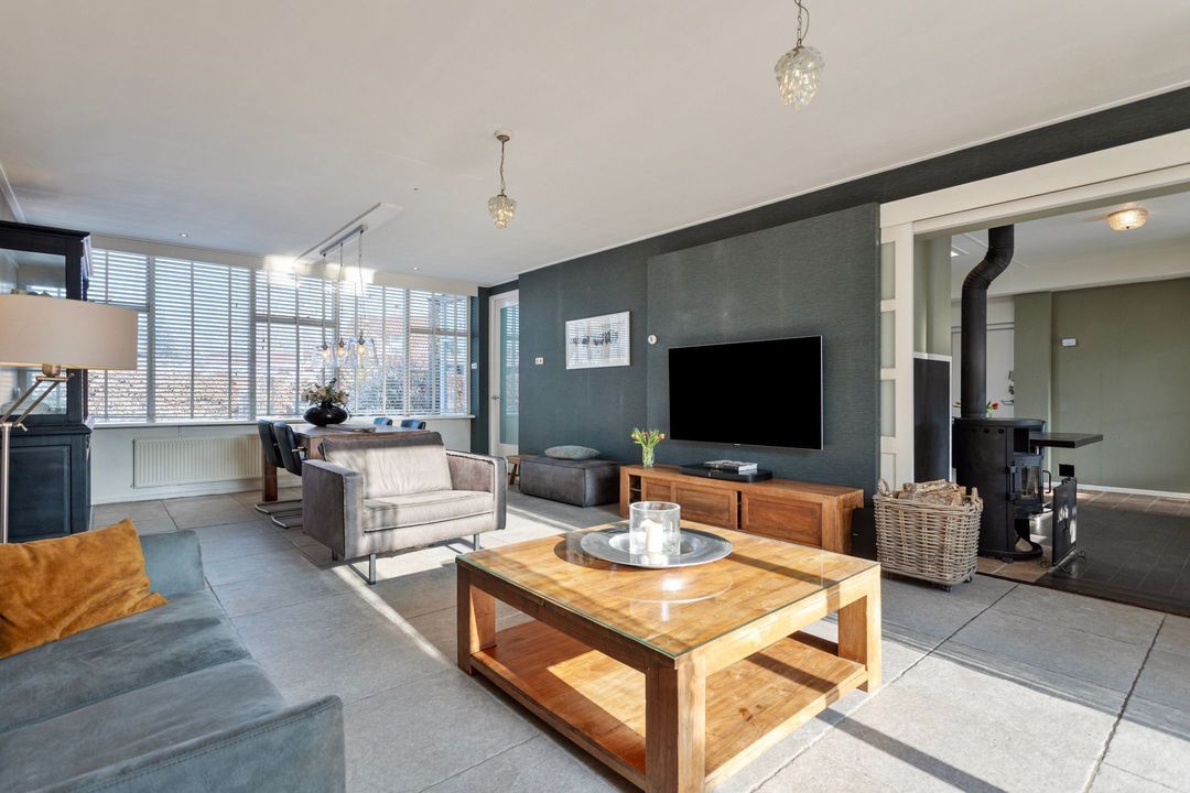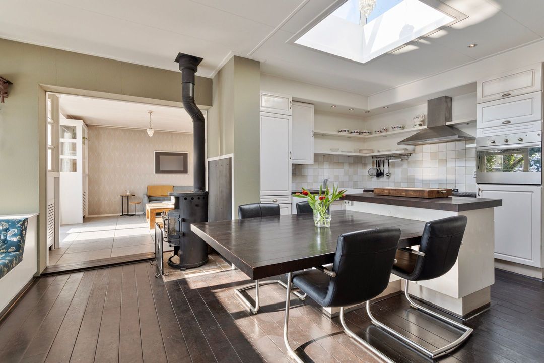 Entree met hal en modern toilet. De royale en lichte woonkamer beschikt over een schuifpui naar de tuin, waardoor binnen en buiten naadloos in elkaar overlopen. Via een schuifdeur bereikt u de enorme woonkeuken met hoekopstelling voorzien van inbouwapparatuur, een gezellige kachel en een vaste bank met prachtig uitzicht op de tuin. Aansluitend bevindt zich een praktische bijkeuken met aansluitingen voor wasapparatuur.