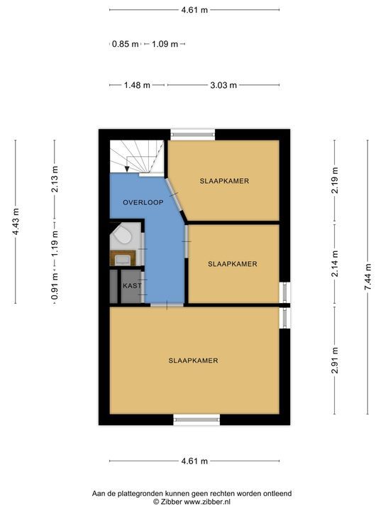 Overloop met toilet en inbouwkasten. Verder zijn hier drie slaapkamers gesitueerd.