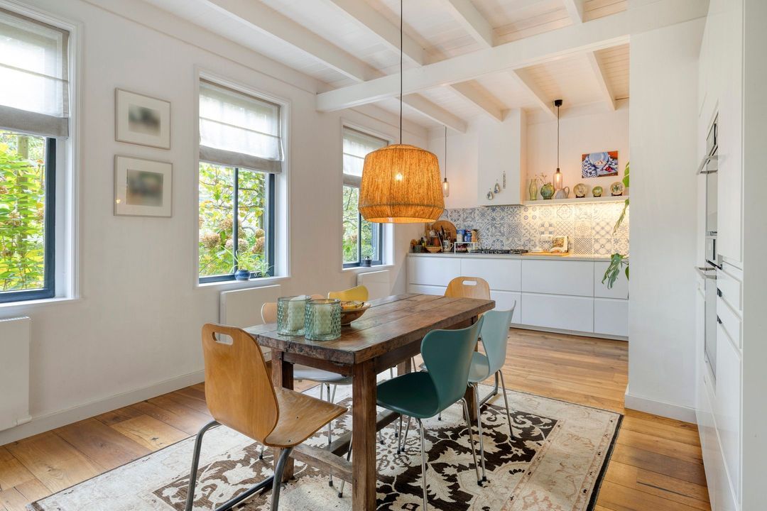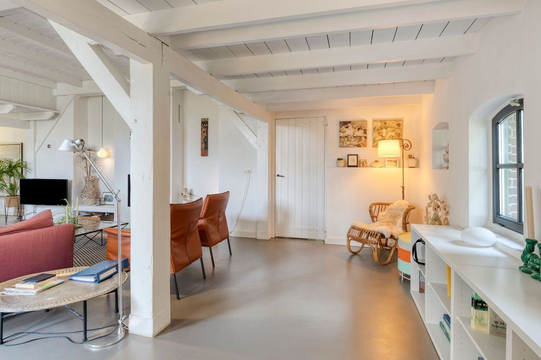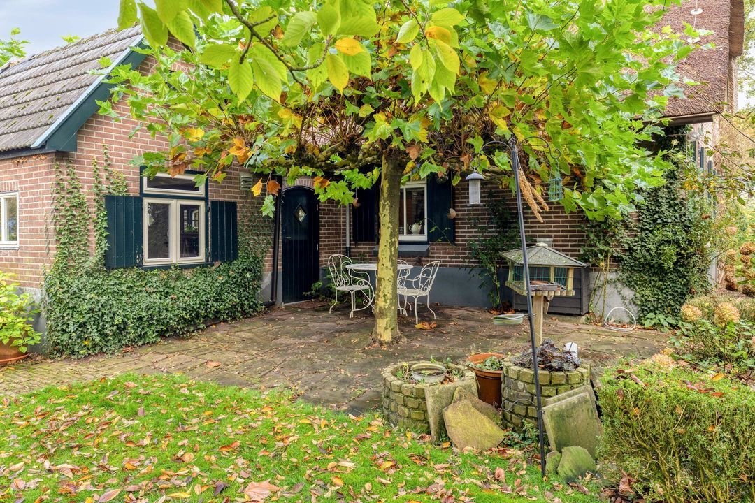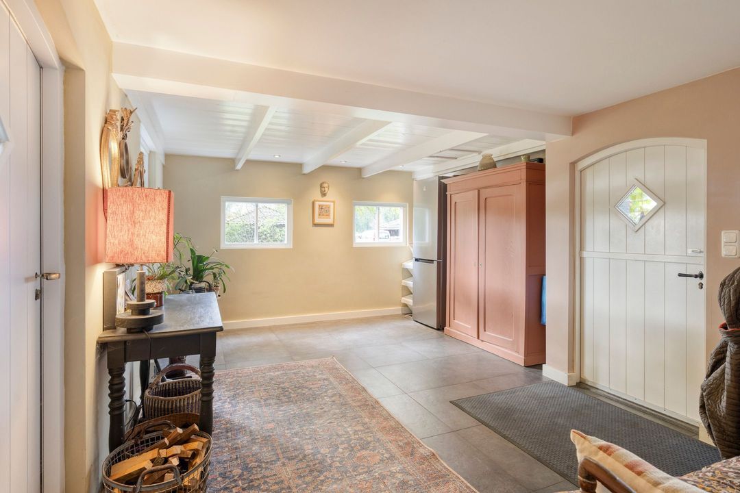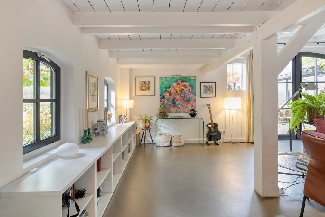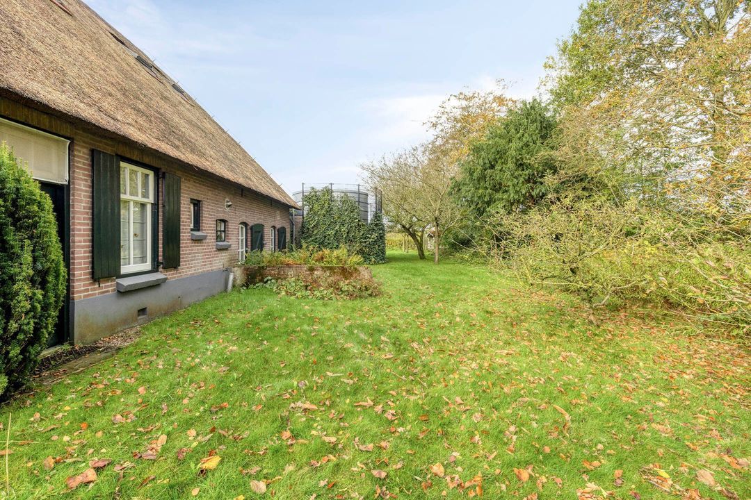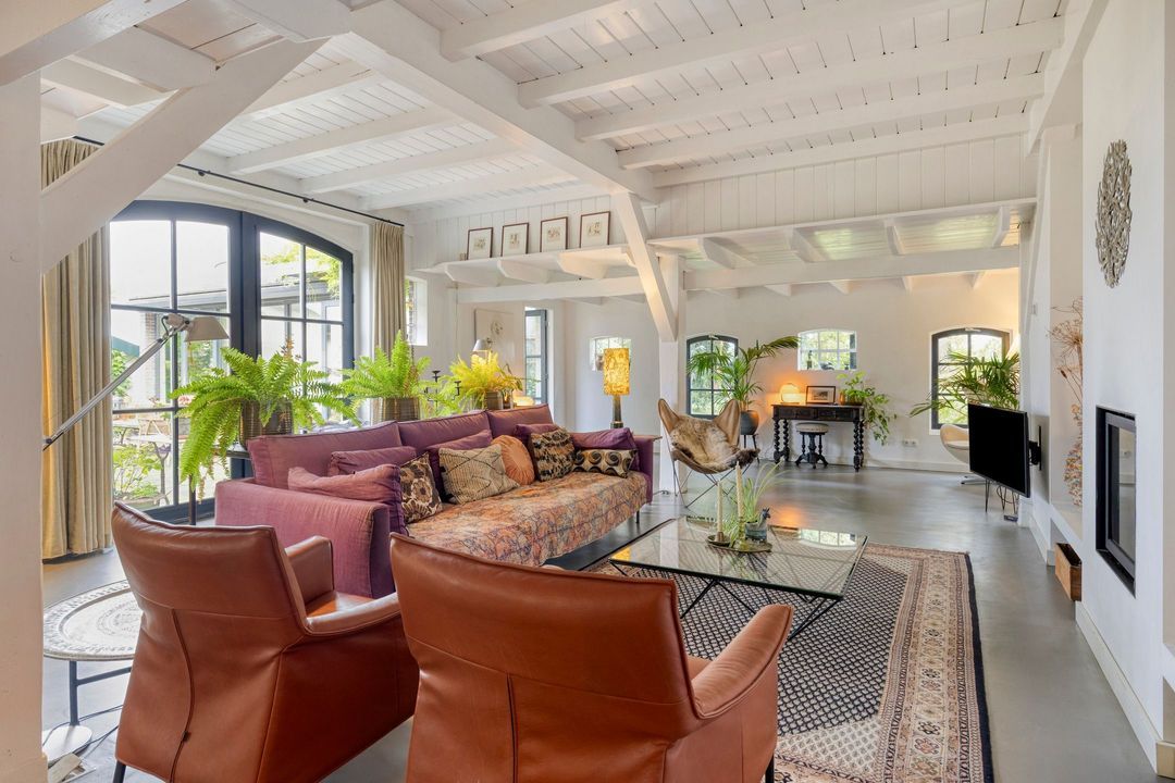 Bij aankomst betreedt u de woning via het voormalige bakhuis met hal en doorgang naar de boerderij. De sfeervolle woonkamer bevindt zich op de oude deel en ademt karakter dankzij de authentieke gebinten en het balkenplafond. De ruimte is voorzien van vloerverwarming, een inbouwhaard en openslaande deuren naar het terras. Vanuit hier bereikt u de moderne uitbouw, waar een lichte tuinkamer met prachtig uitzicht over de tuin is gerealiseerd.