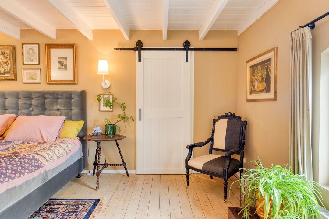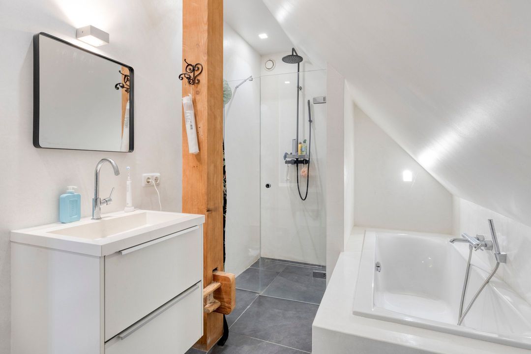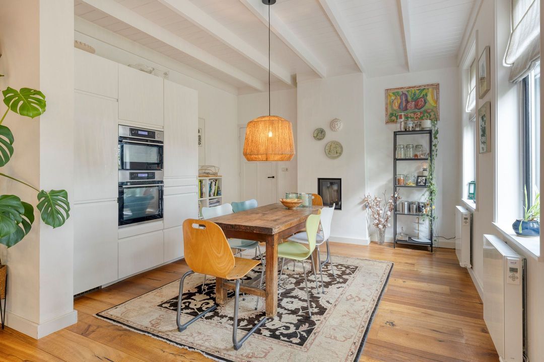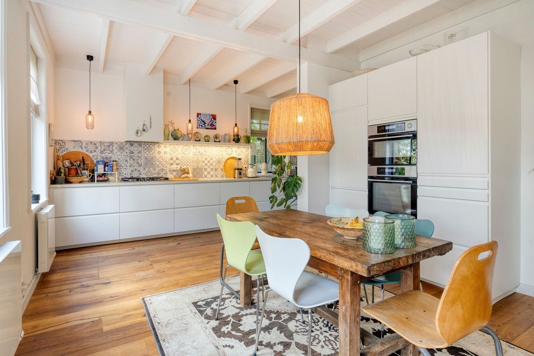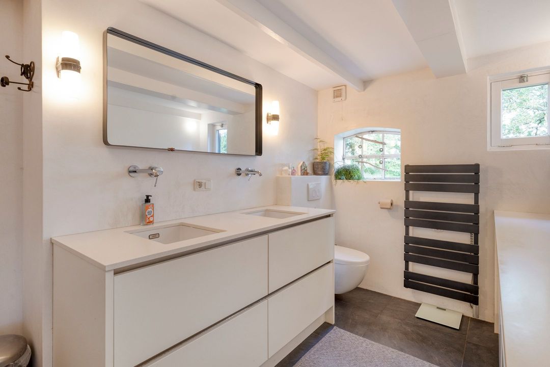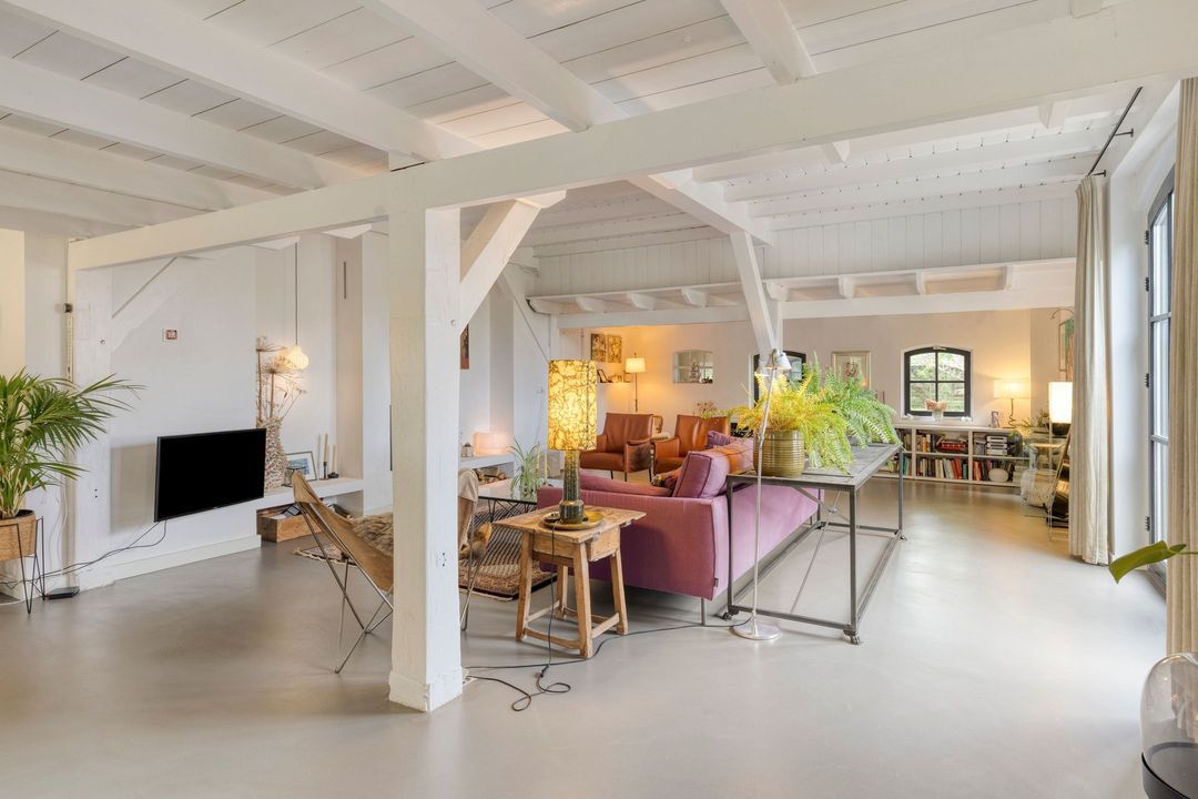 Bij aankomst betreedt u de woning via het voormalige bakhuis met hal en doorgang naar de boerderij. De sfeervolle woonkamer bevindt zich op de oude deel en ademt karakter dankzij de authentieke gebinten en het balkenplafond. De ruimte is voorzien van vloerverwarming, een inbouwhaard en openslaande deuren naar het terras. Vanuit hier bereikt u de moderne uitbouw, waar een lichte tuinkamer met prachtig uitzicht over de tuin is gerealiseerd.