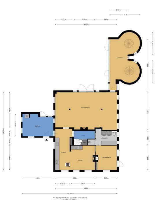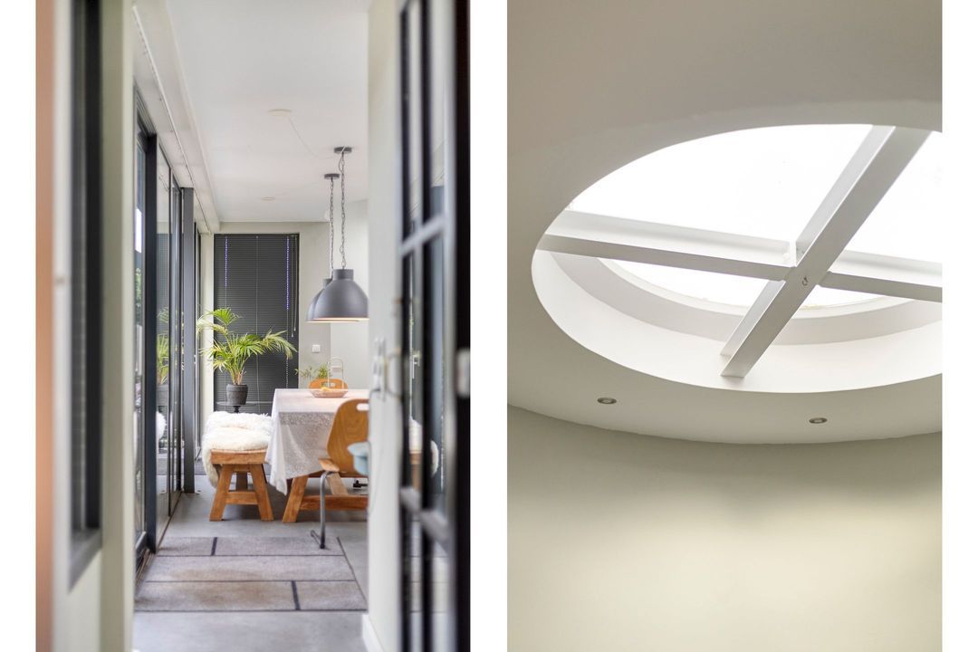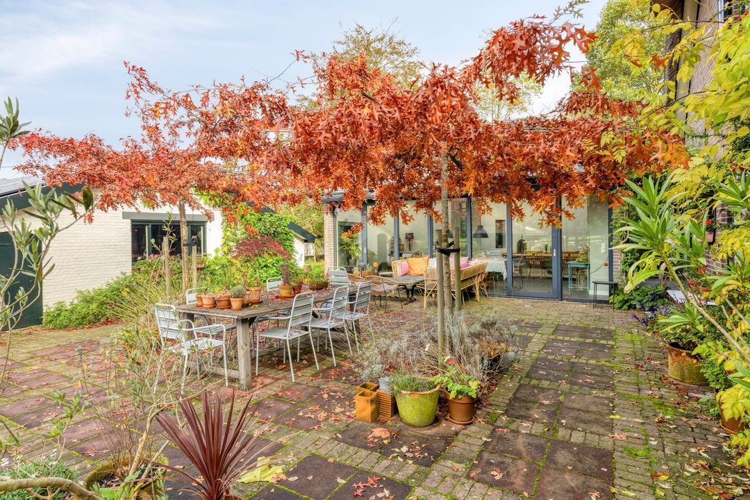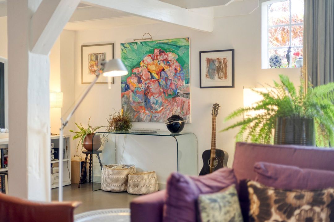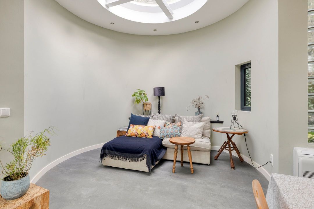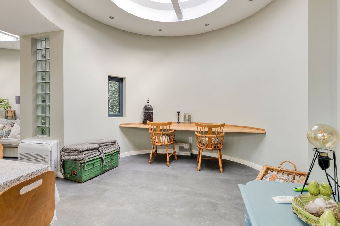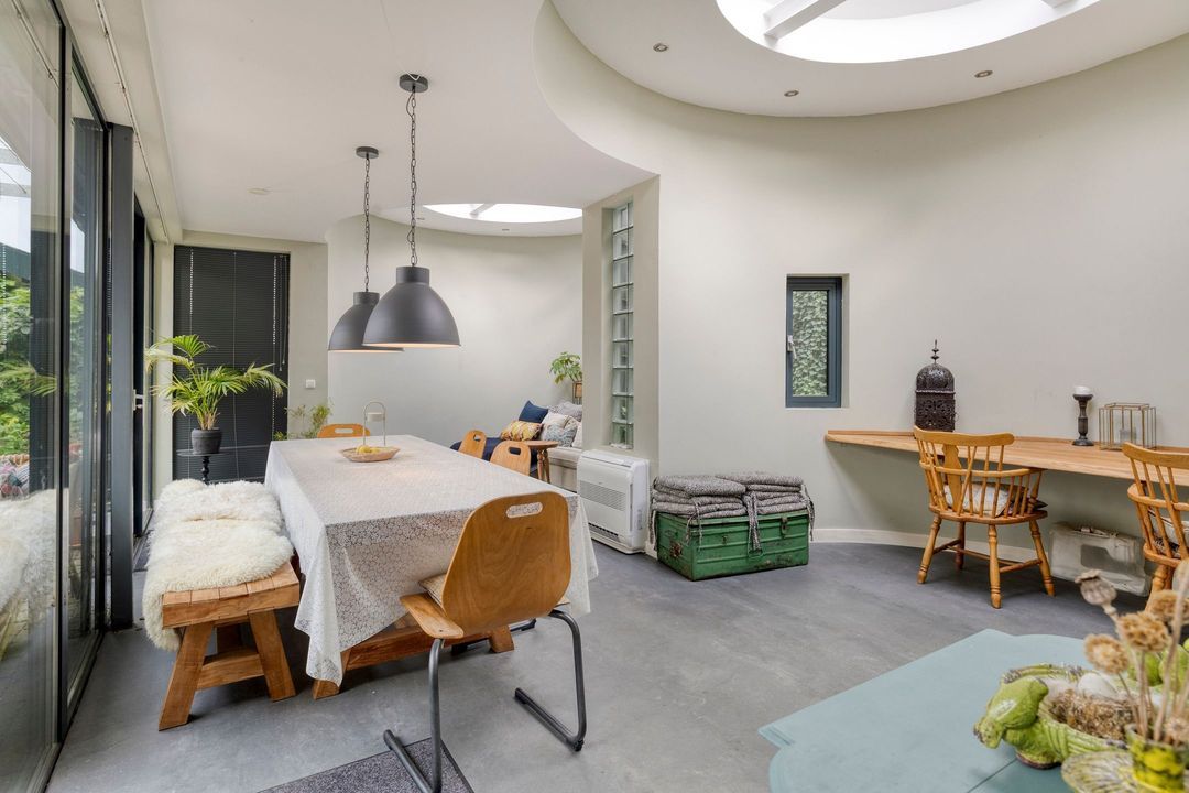 Bij aankomst betreedt u de woning via het voormalige bakhuis met hal en doorgang naar de boerderij. De sfeervolle woonkamer bevindt zich op de oude deel en ademt karakter dankzij de authentieke gebinten en het balkenplafond. De ruimte is voorzien van vloerverwarming, een inbouwhaard en openslaande deuren naar het terras. Vanuit hier bereikt u de moderne uitbouw, waar een lichte tuinkamer met prachtig uitzicht over de tuin is gerealiseerd.