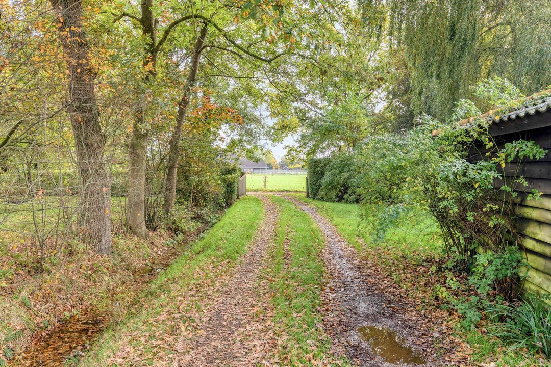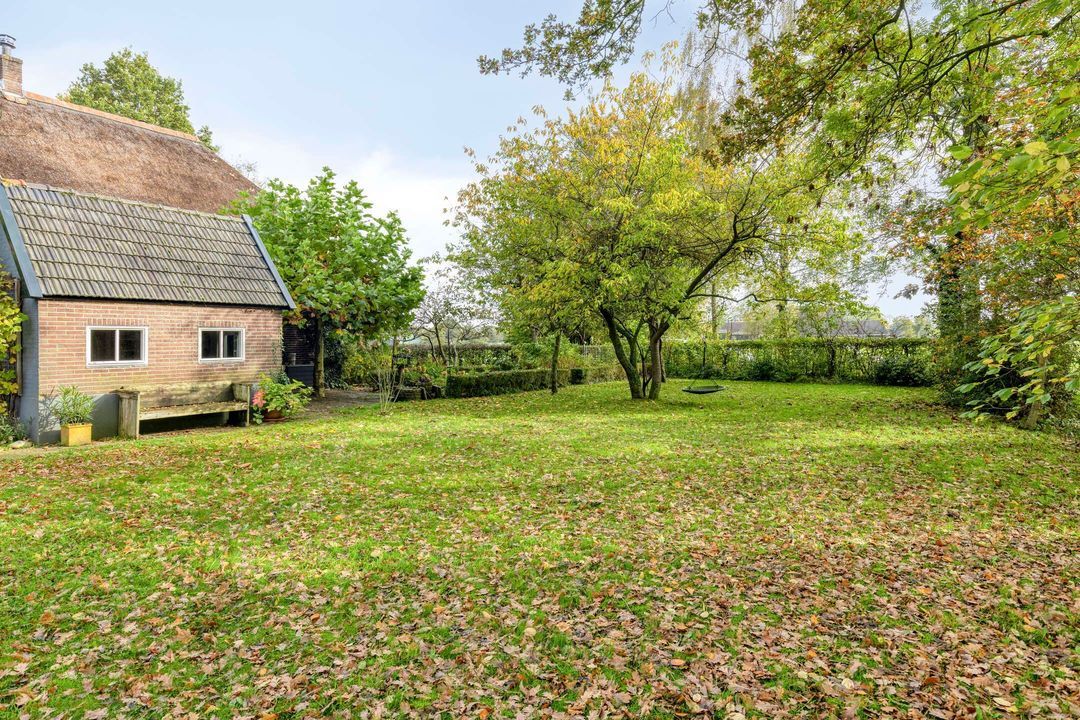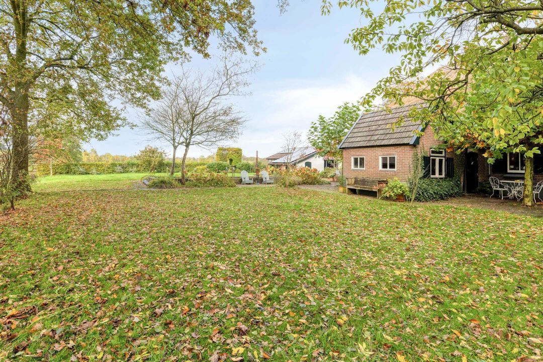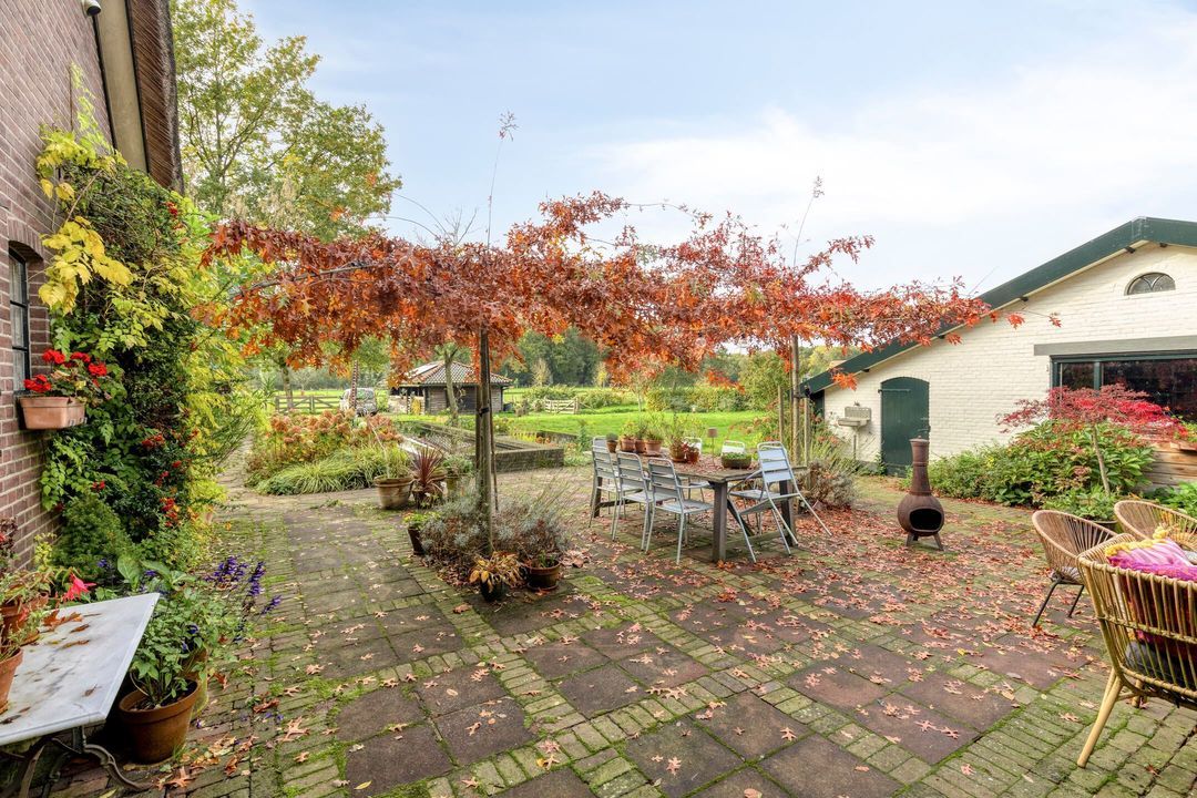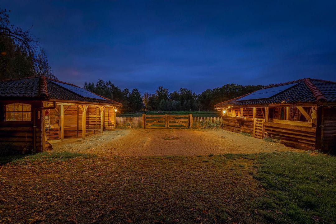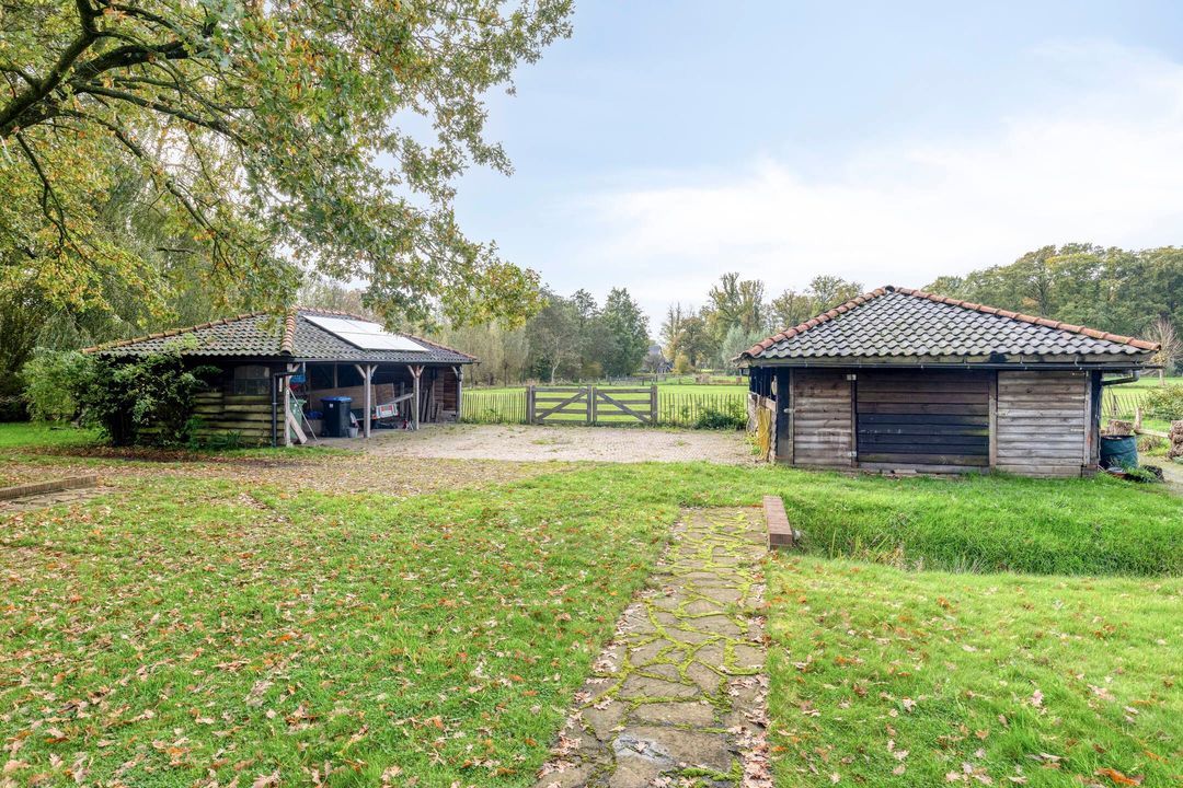 Buiten is het minstens zo indrukwekkend. Op het terrein staan diverse bijgebouwen, waaronder een stenen schuur van circa 40 m² met veranda en berging, en twee kapschuren van ieder ongeveer 40 m² die in gebruik zijn als carport, berging en dierenverblijf. Daarnaast is er een fraaie zwemvijver en zijn er meerdere terrassen met panoramisch uitzicht over de omliggende weilanden.