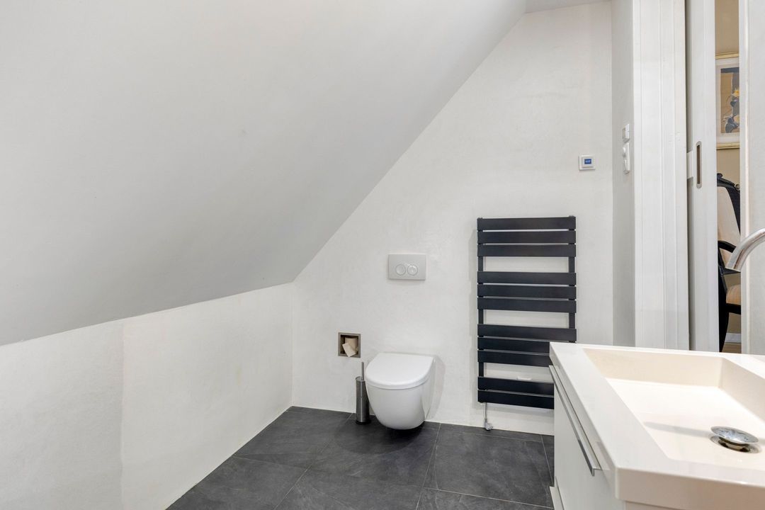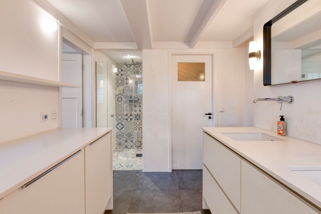 Op de eerste verdieping bevindt zich een royale overloop met vaste kasten. Aan de voorzijde zijn twee slaapkamers met een badkamer voorzien van inloopdouche, wastafel en toilet. Aan de achterzijde ligt de masterbedroom met veel inbouwkasten en een ruime, complete badkamer met ligbad, inloopdouche, wastafelmeubel en toilet.