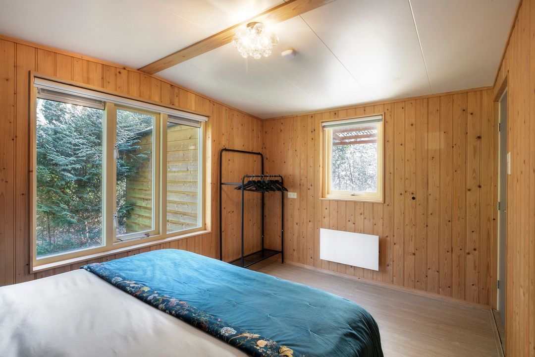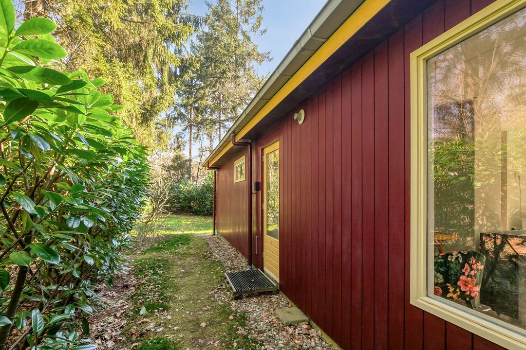 Hier vindt u een bijzonder en sfeervol recreatieverblijf, gelegen op een prachtig bosperceel van maar liefst 970 m². Het geheel is niet gelegen op een vakantiepark, wat zorgt voor extra privacy en een ongedwongen karakter. Omringd door groen ervaart u hier het echte buitenleven, met een serene sfeer die direct uitnodigt om te ontspannen. Dit is een plek waar u kunt ontsnappen aan de drukte van alledag en volledig tot uzelf komt.
