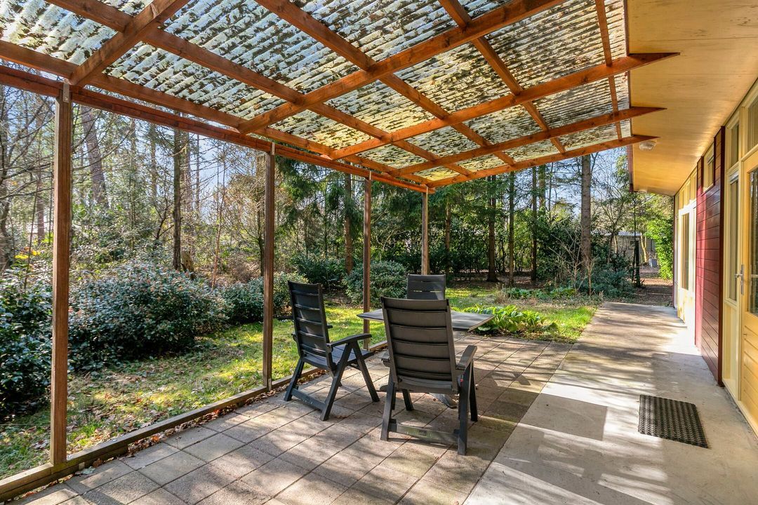 Aan de voorzijde vindt u een fantastische overkapping met terras en aansluitend een schuur, ideaal voor het opbergen van fietsen, tuingereedschap en andere spullen. Rondom de woning ligt een verzorgde bostuin met een zonnig terras op het zuiden en volop privacy. Het perceel is volledig omheind en biedt voldoende parkeergelegenheid op eigen terrein.