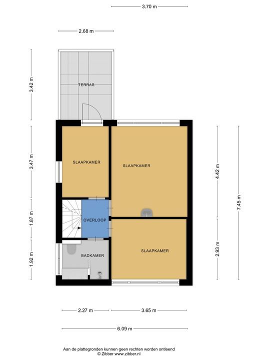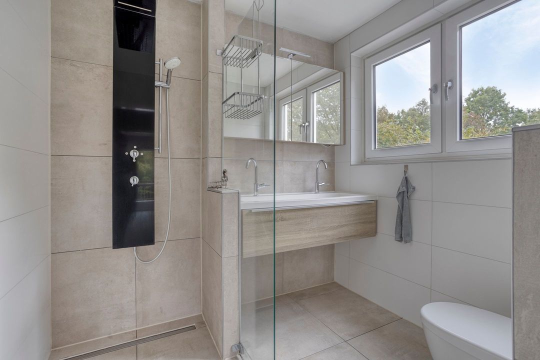 Op de eerste verdieping bevinden zich drie ruime slaapkamers, waarvan één met toegang tot het dakterras aan de achterzijde. De moderne badkamer is voorzien van een wastafelmeubel, inloopdouche en tweede toilet.