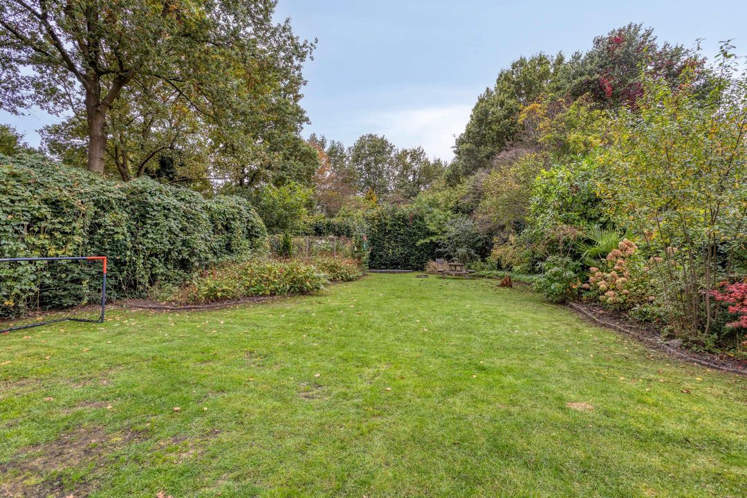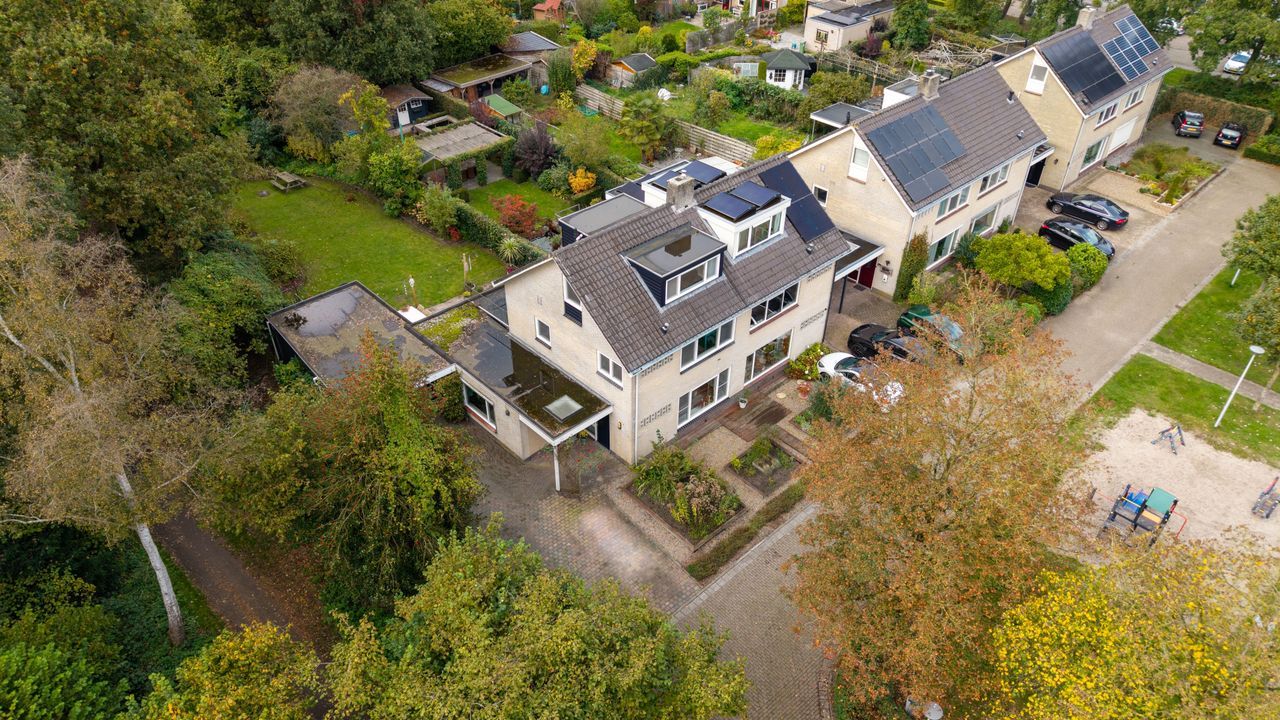 De zeer diepe achtertuin van circa 30 meter is gelegen op het zuidwesten, biedt diverse terrassen en veel privacy. Hier woont u echt in het groen. Aan de voorzijde bevindt zich een royale oprit met ruimte voor meerdere auto’s. Tevens is er een royale houten berging met met carport.