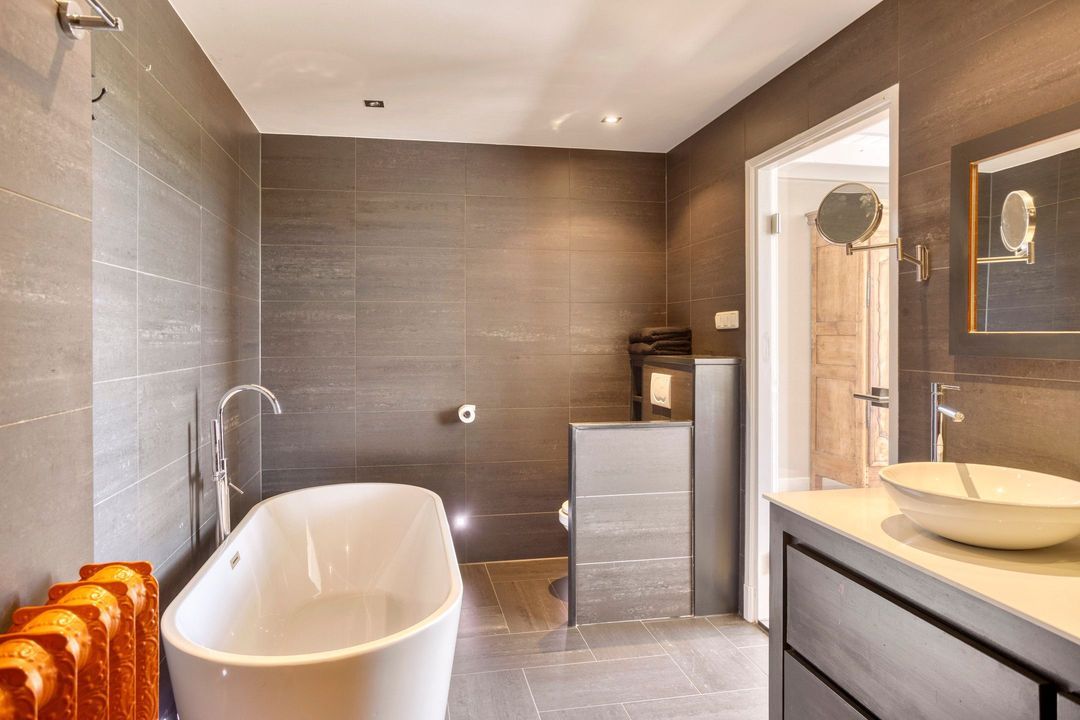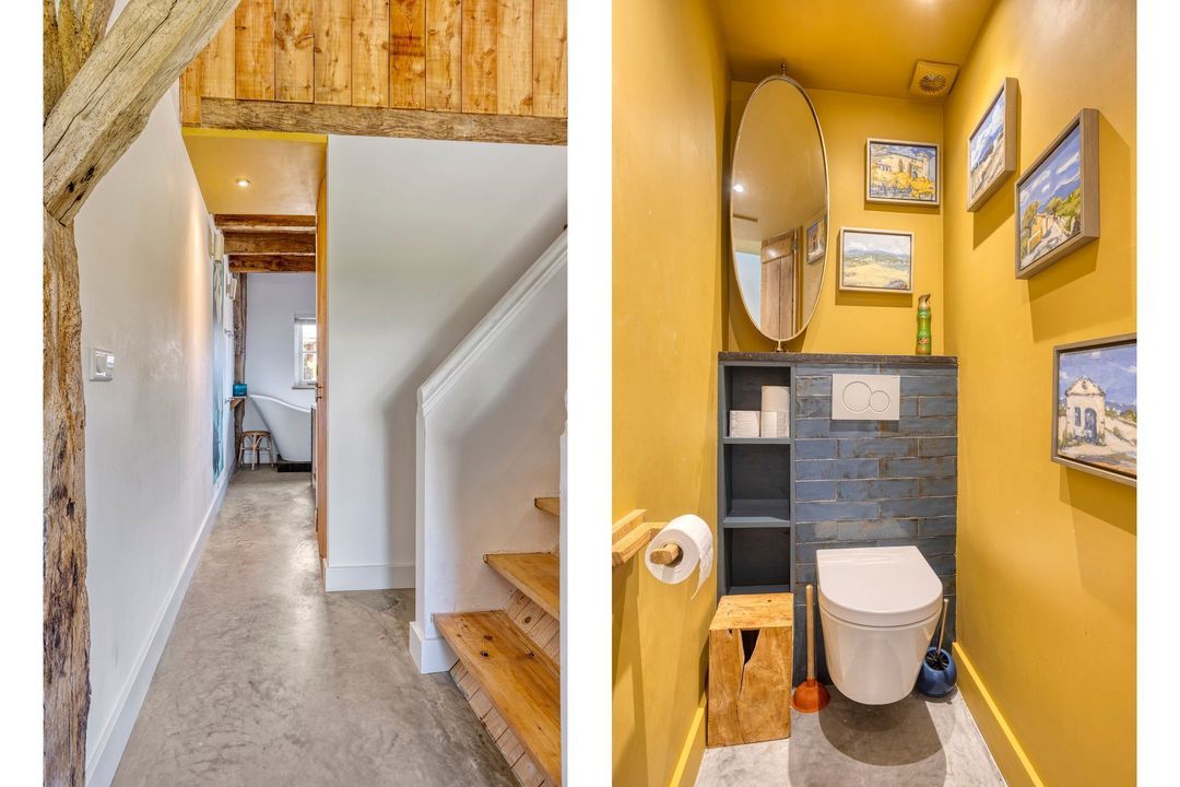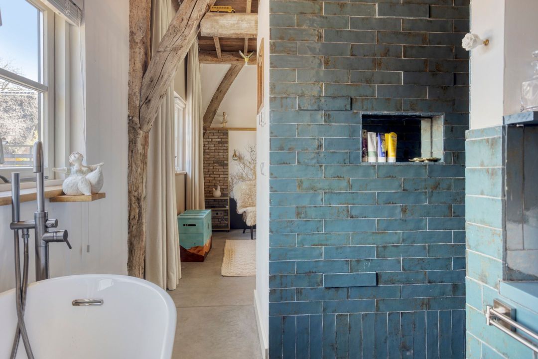 De bovenverdieping bestaat uit een overloop, een tweede badkamer met douche, toilet en wastafel, en twee sfeervolle slaapkamers met prachtige zichtbare gebinten.