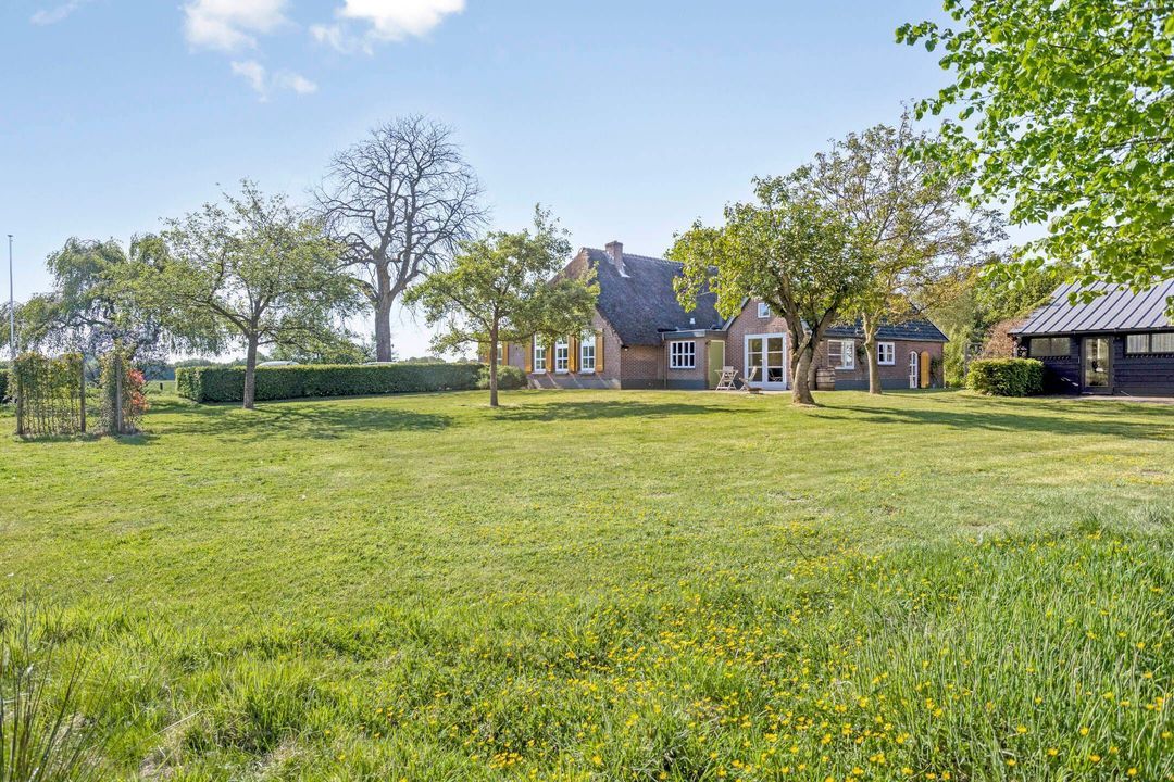 Het perceel is met zorg en oog voor detail aangelegd. De breedte van circa 70 meter en diepte van ongeveer 200 meter zorgen voor een ruimtelijk gevoel en veel privacy. Weilanden aan zowel de voor- als achterzijde maken het object uitermate geschikt voor paardenliefhebbers. Verder is het terrein voorzien van een fraai aangelegde siertuin, glooiende grasvelden, natuurlijke vijver, bomen, hagen en goed onderhouden bestrating met oude waaltjes en gebakken klinkers. Regenwater wordt via een ondergronds buizensysteem afgevoerd naar de vijver aan de voorzijde, waardoor het waterpeil altijd in balans blijft.
