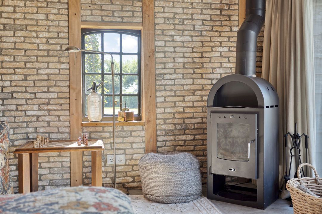 Deze multifunctionele ruimte omvat een garage/werkplaats, twee paardenstallen en een gastenverblijf dat ook uitstekend dienst kan doen als atelier of studio. Het gastenverblijf beschikt over een woonkamer met houtkachel, een afgescheiden slaapgedeelte, een keukentje, toilet en een inloopdouche met wastafel.