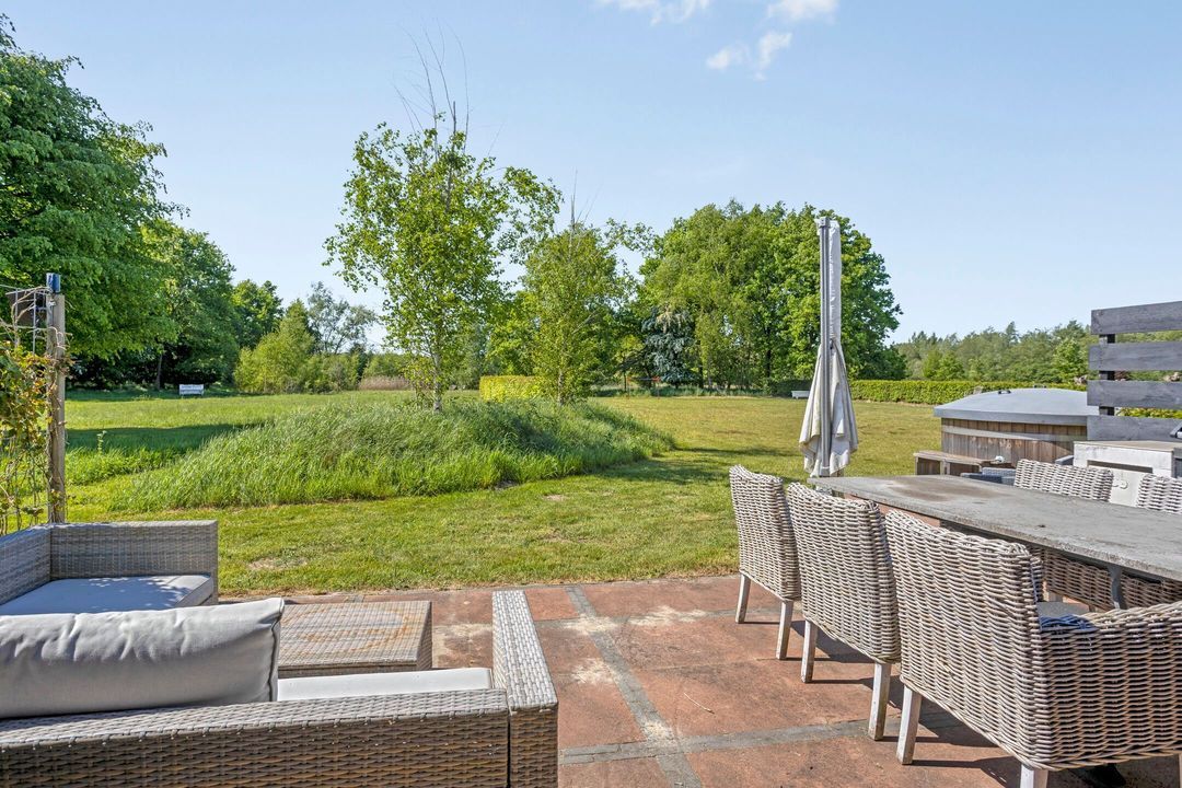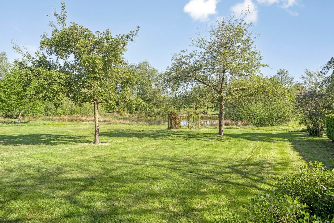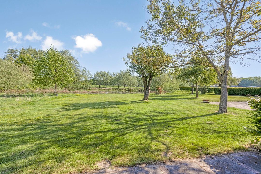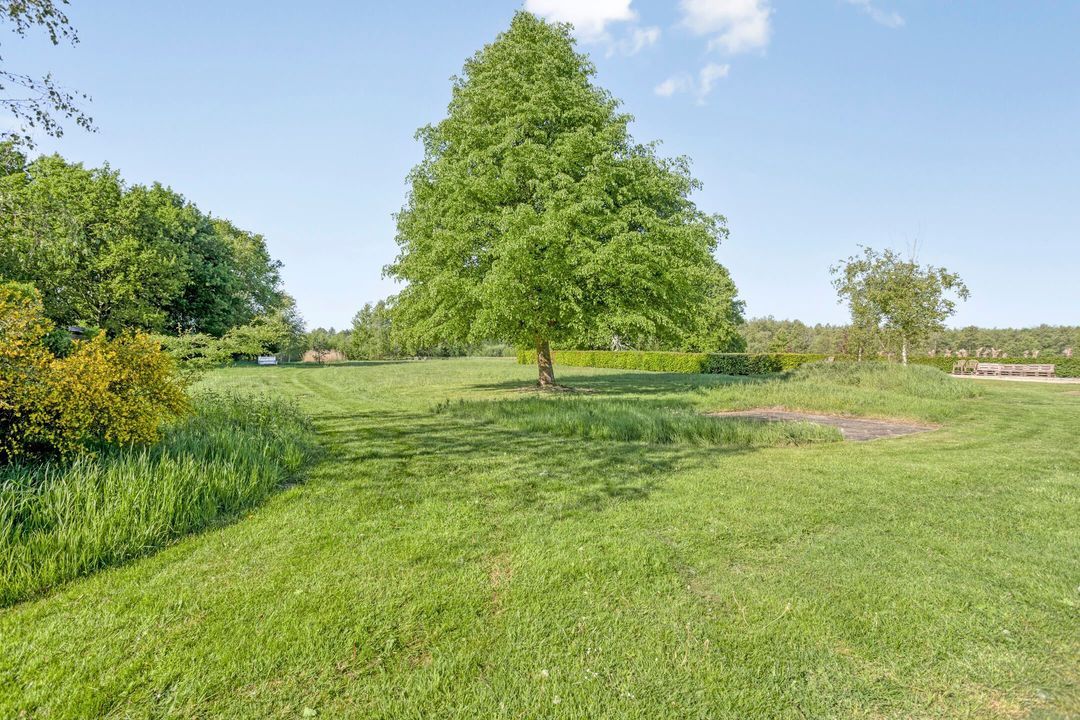 Het perceel is met zorg en oog voor detail aangelegd. De breedte van circa 70 meter en diepte van ongeveer 200 meter zorgen voor een ruimtelijk gevoel en veel privacy. Weilanden aan zowel de voor- als achterzijde maken het object uitermate geschikt voor paardenliefhebbers. Verder is het terrein voorzien van een fraai aangelegde siertuin, glooiende grasvelden, natuurlijke vijver, bomen, hagen en goed onderhouden bestrating met oude waaltjes en gebakken klinkers. Regenwater wordt via een ondergronds buizensysteem afgevoerd naar de vijver aan de voorzijde, waardoor het waterpeil altijd in balans blijft.