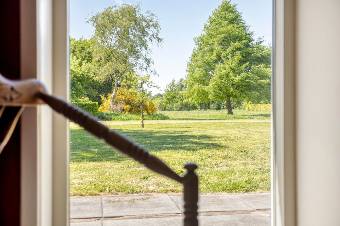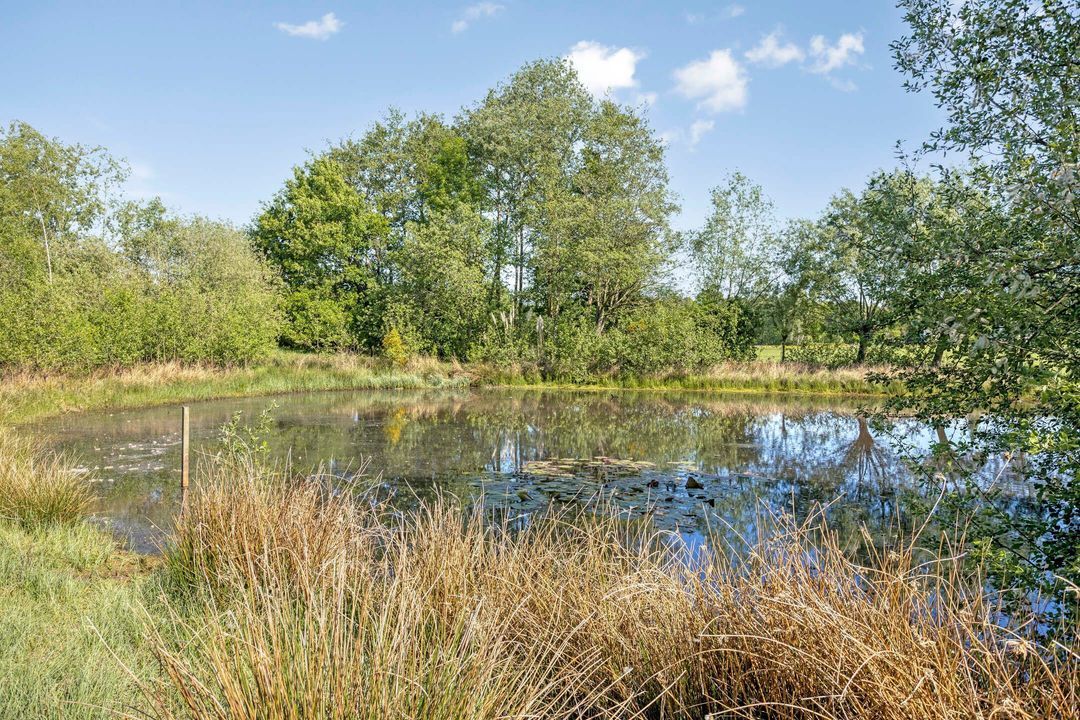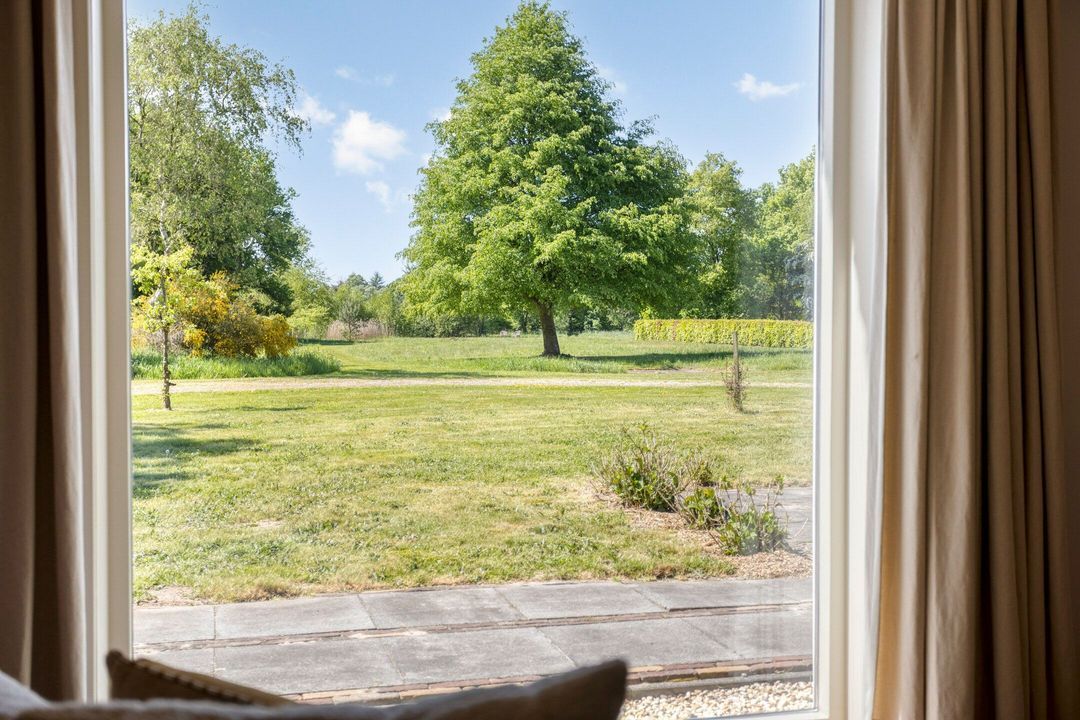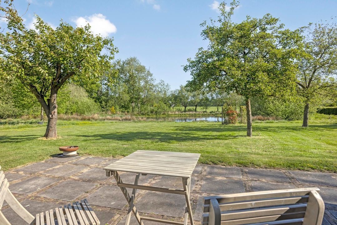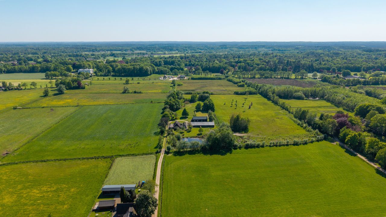Het perceel is met zorg en oog voor detail aangelegd. De breedte van circa 70 meter en diepte van ongeveer 200 meter zorgen voor een ruimtelijk gevoel en veel privacy. Weilanden aan zowel de voor- als achterzijde maken het object uitermate geschikt voor paardenliefhebbers. Verder is het terrein voorzien van een fraai aangelegde siertuin, glooiende grasvelden, natuurlijke vijver, bomen, hagen en goed onderhouden bestrating met oude waaltjes en gebakken klinkers. Regenwater wordt via een ondergronds buizensysteem afgevoerd naar de vijver aan de voorzijde, waardoor het waterpeil altijd in balans blijft.