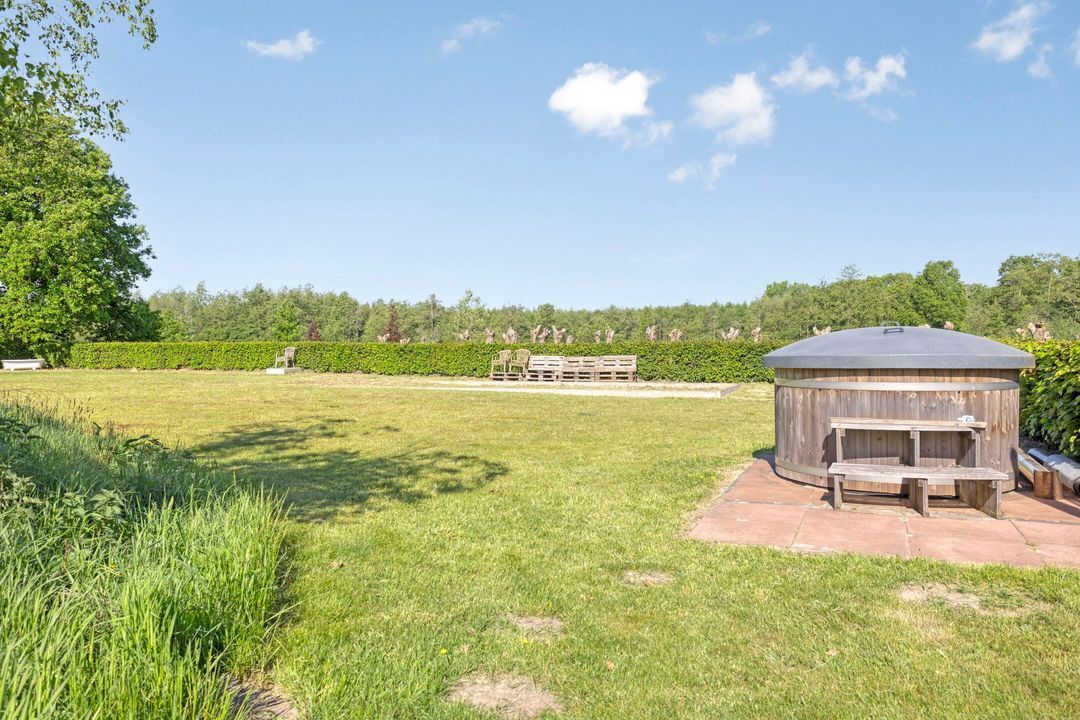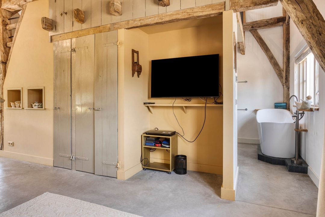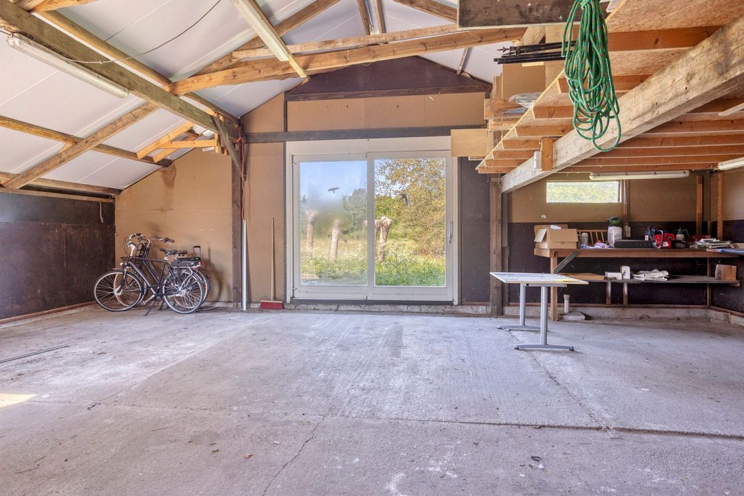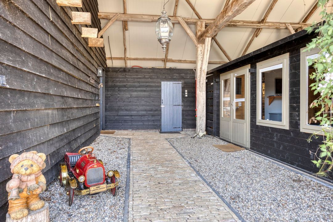De kapschuur is voorzien van een parkeerplaats, opslagruimte, een tuinhuis met eigen sanitair, een technische ruimte en een bijzonder sfeervol gecertificeerd B&B-gedeelte die direct klaar is om te verhuren. De Bed and Breakfast heeft een eigen entree en beschikt over een keuken, zitkamer, slaapgedeelte en een open badkamer met ligbad, royale inloopdouche, dubbele wastafel en separaat toilet. Alle meubels in de B&B kunnen worden overgenomen. Via een trap bereikt u een gezellige chillruimte en een tweede slaapkamer. De houten constructie is volledig in het zicht gebleven, wat de ruimte een warme, authentieke uitstraling geeft. Het privéterras met buitenkeuken en houtgestookte hottub, gelegen op het zuiden, maakt dit tot een ware oase van rust en luxe.