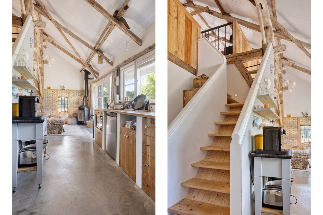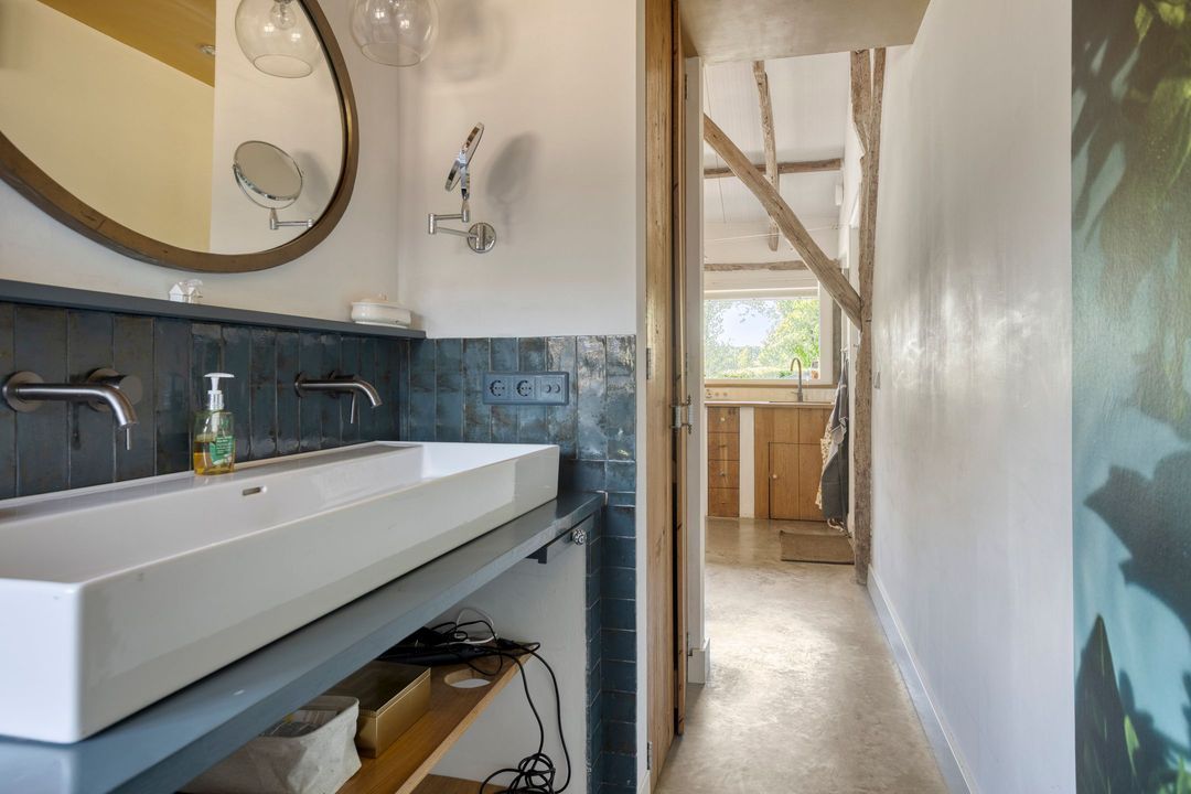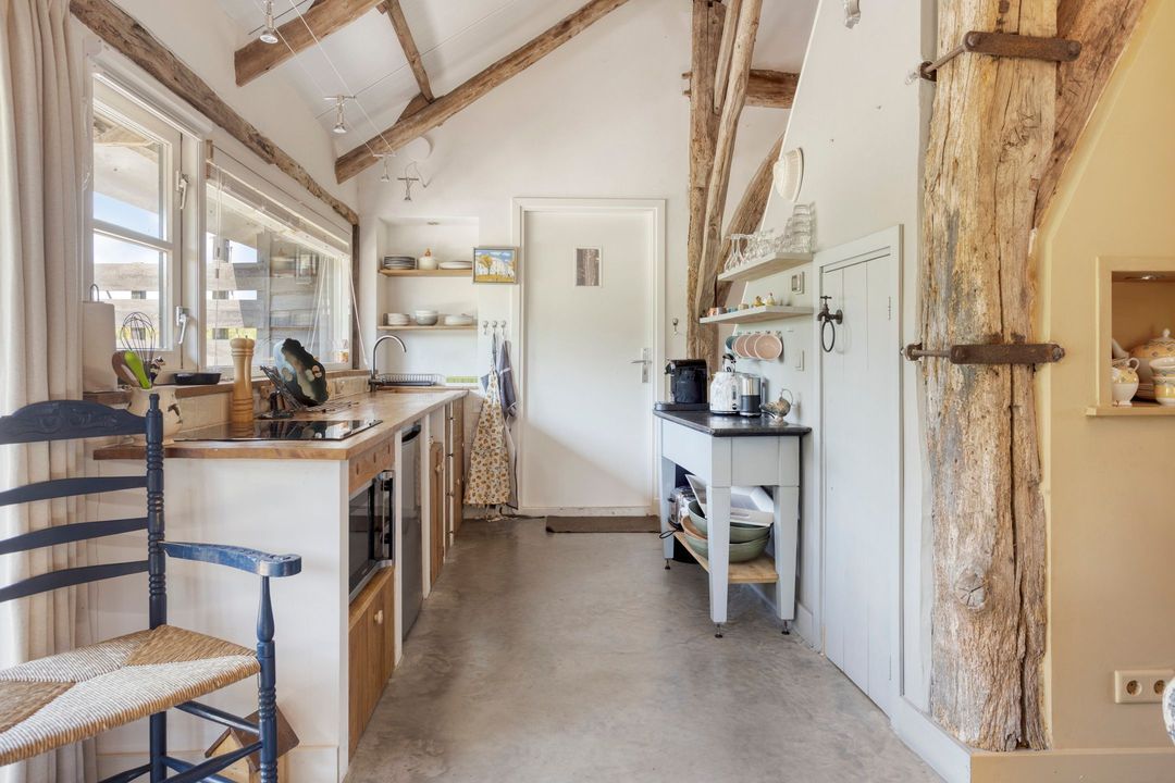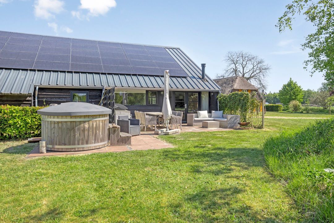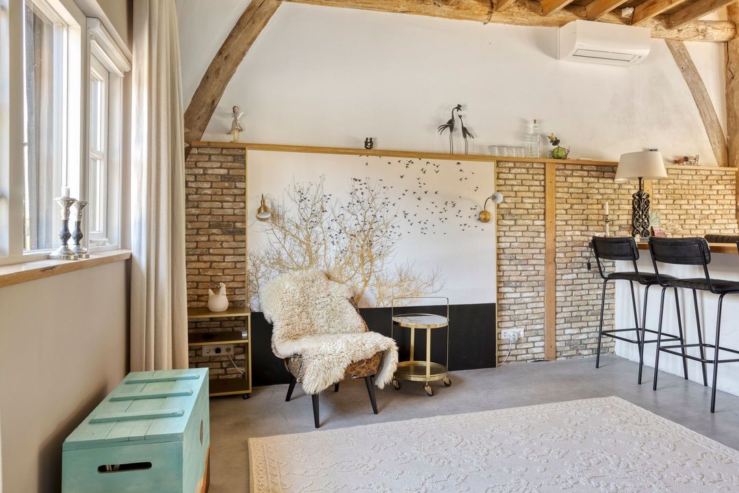 De kapschuur is voorzien van een parkeerplaats, opslagruimte, een tuinhuis met eigen sanitair, een technische ruimte en een bijzonder sfeervol gecertificeerd B&B-gedeelte die direct klaar is om te verhuren. De Bed and Breakfast heeft een eigen entree en beschikt over een keuken, zitkamer, slaapgedeelte en een open badkamer met ligbad, royale inloopdouche, dubbele wastafel en separaat toilet. Alle meubels in de B&B kunnen worden overgenomen. Via een trap bereikt u een gezellige chillruimte en een tweede slaapkamer. De houten constructie is volledig in het zicht gebleven, wat de ruimte een warme, authentieke uitstraling geeft. Het privéterras met buitenkeuken en houtgestookte hottub, gelegen op het zuiden, maakt dit tot een ware oase van rust en luxe.