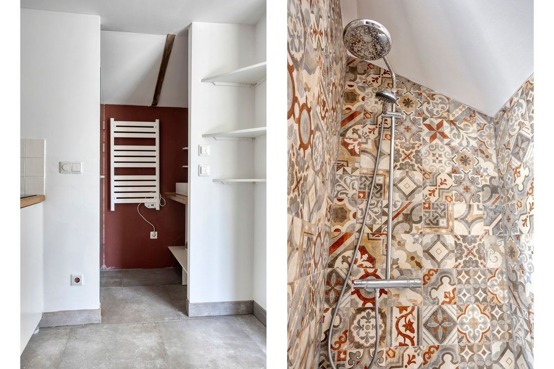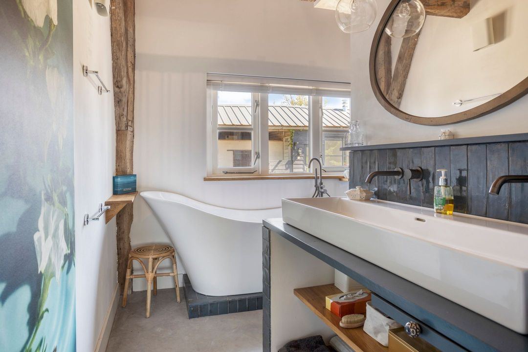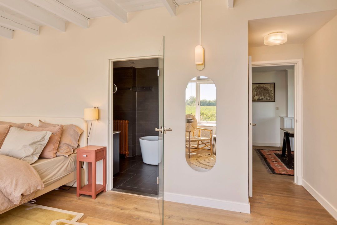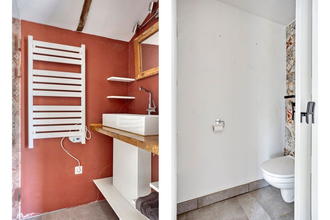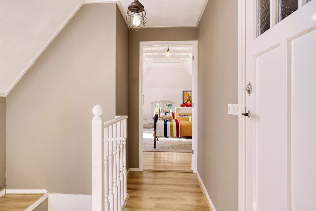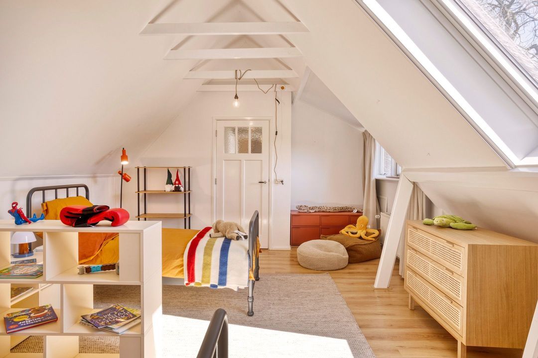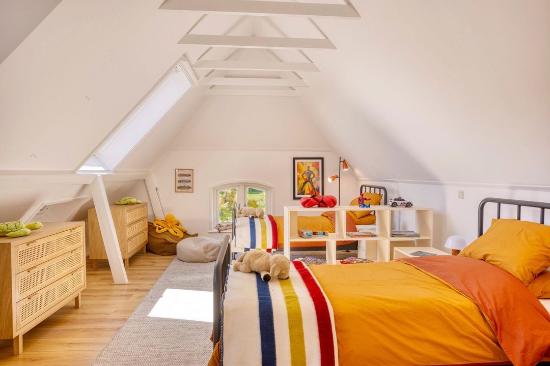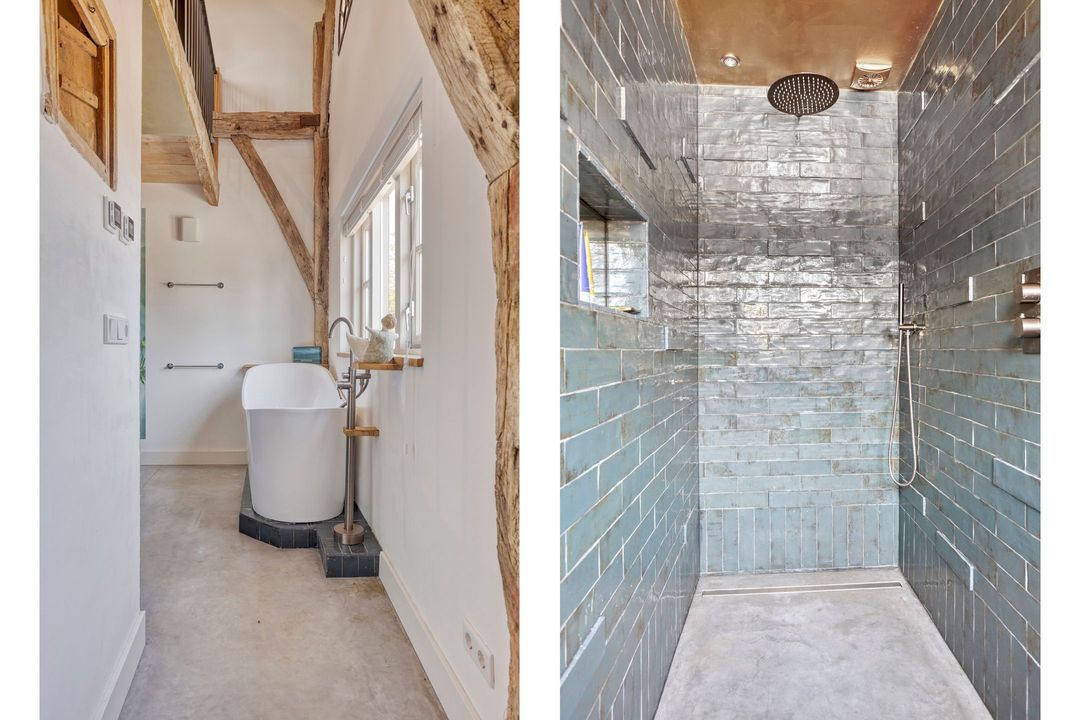 De bovenverdieping bestaat uit een overloop, een tweede badkamer met douche, toilet en wastafel, en twee sfeervolle slaapkamers met prachtige zichtbare gebinten.