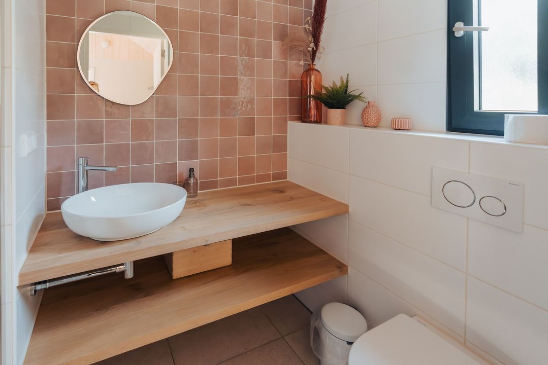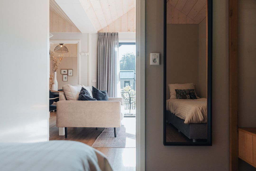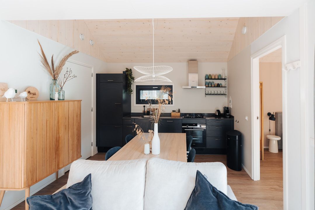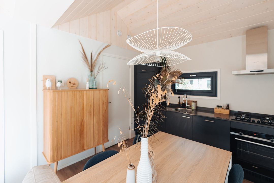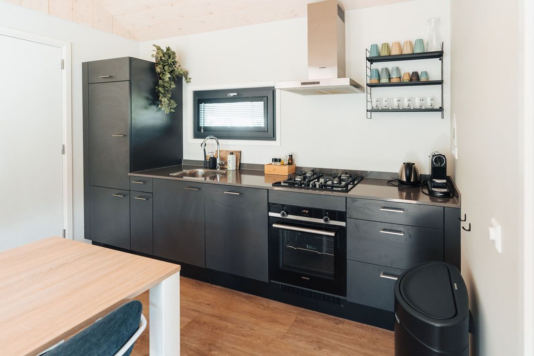 Het hele huis is voorzien van een warme houtlook vloer en comfortabele vloerverwarming, waardoor dit tiny house ook in de winter zeer prettig te verblijven is.