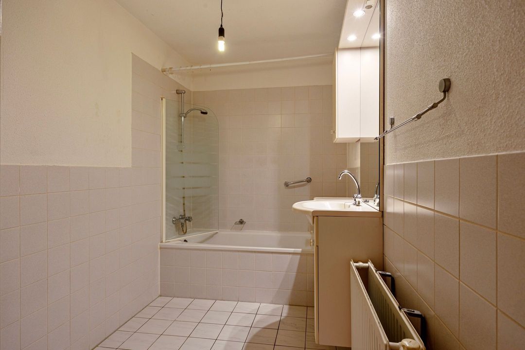 Via de ruime hal zijn de overige vertrekken bereikbaar, waaronder de badkamer met ligbad, wastafel en wasmachineaansluiting, evenals twee ruime slaapkamers.