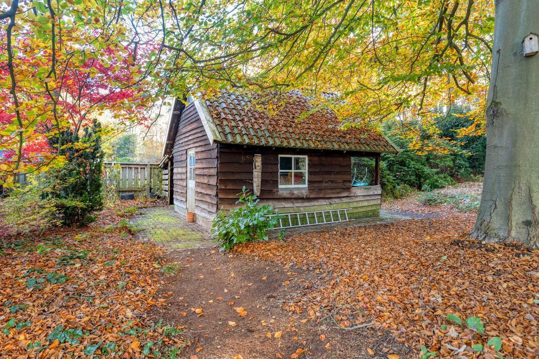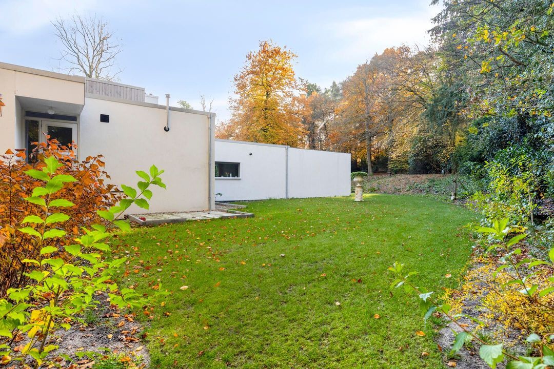 De tuin rondom is recent volledig opnieuw aangelegd en biedt diverse terrassen, een veranda, een fraaie oprijlaan en een vrijstaande houten schuur (toegankelijk via de tuin of via de achteringang aan de Oranje Nassaulaan). De tuin is volledig omheind en biedt optimale privacy.